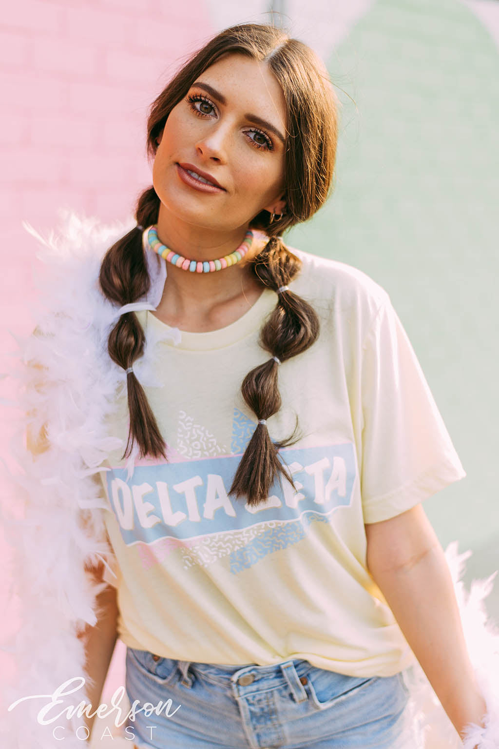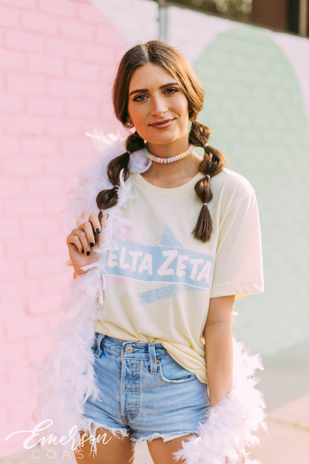 KKG at Florida State kept it effortlessly cool for Open Round with white slouchy tees styled with classic denim. Simple, chic, and easy to accessorize — the perfect uniform for making first impressions and showing off their signature style.