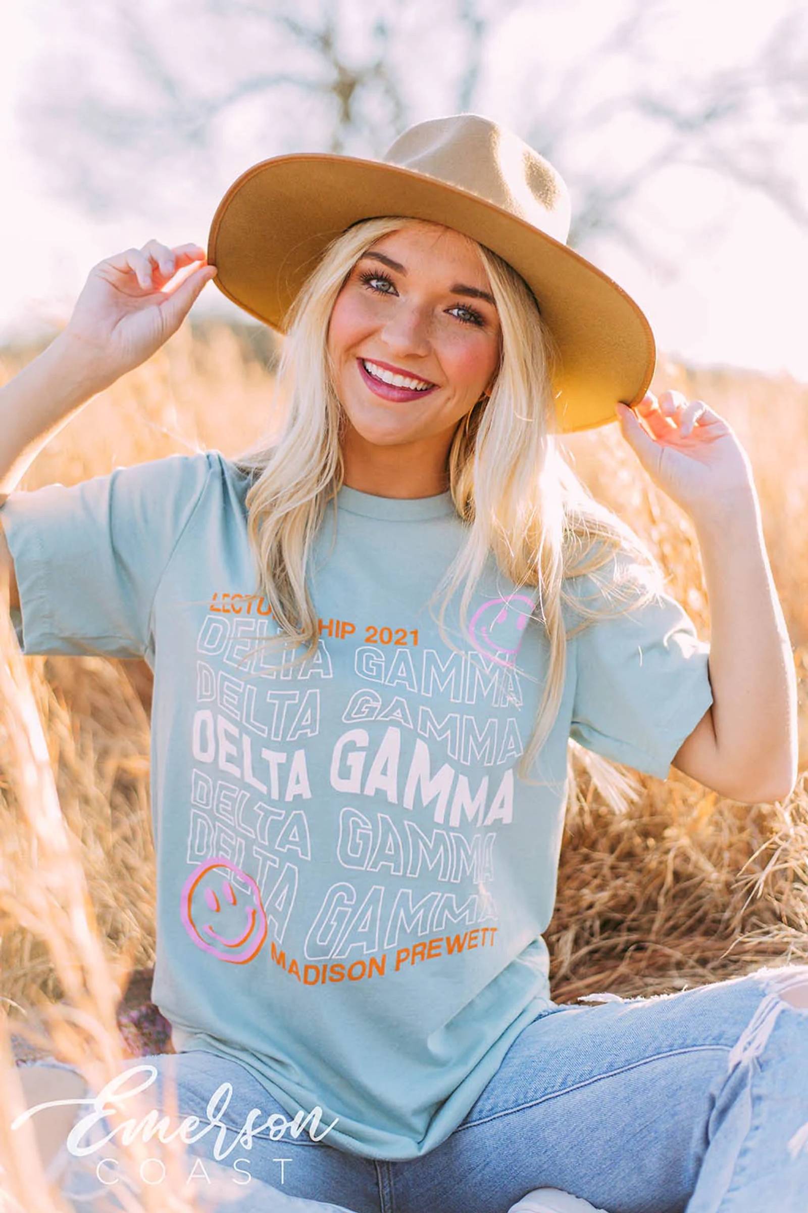 This mint tee is such a fun color for candy themed bid days. Throw a feathered boa on and you're set!