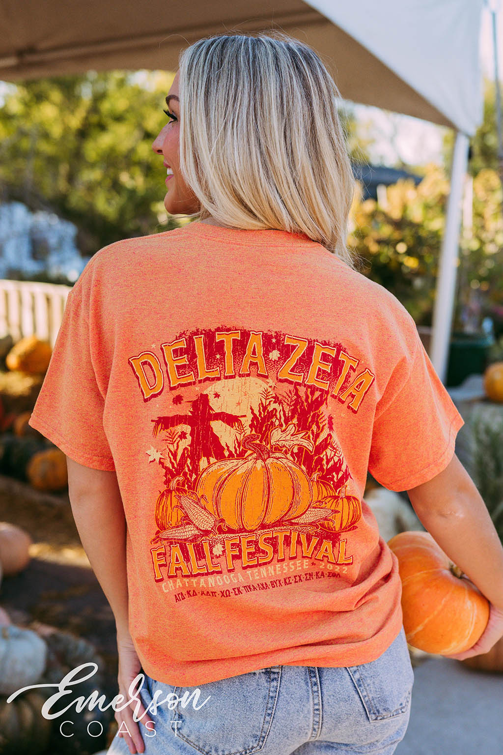Tri Delta at Arkansas captured the magic of the Amalfi Coast for Bid Day with custom slouchy tees — white for members, cloud blue for new girls. Styled with flowy skirts and neck scarves, the whole vibe was straight out of a summer postcard.