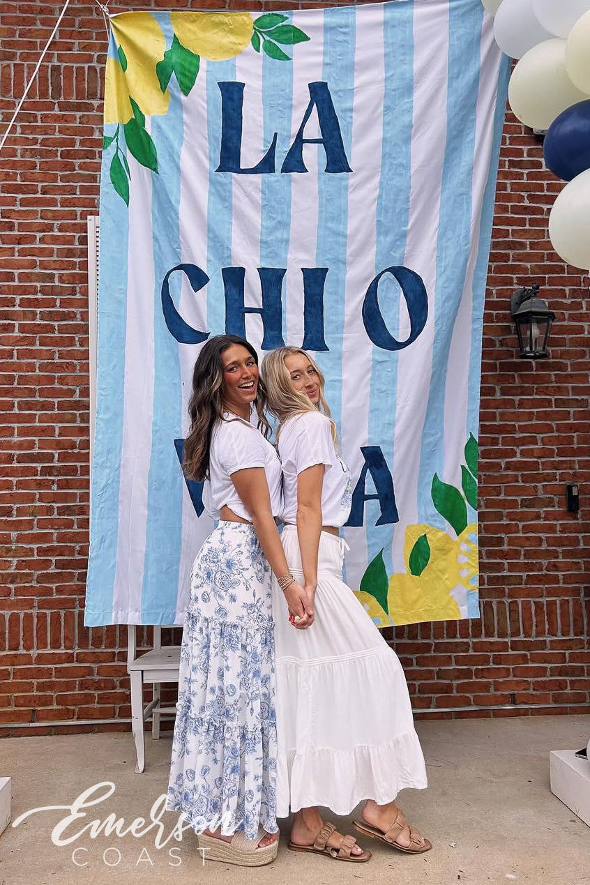 Get ready to celebrate your sisterhood with the Chi Omega University of West Georgia La Chi O Vita Bid Day Slouchy Tee! This stylish tee is designed for comfort and flair, making it the perfect choice for your big day.