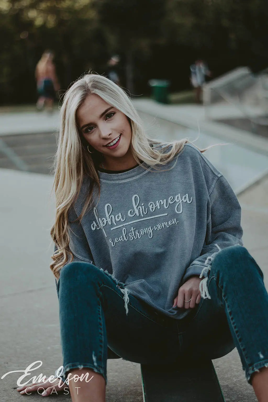 As part of this exclusive sorority, you don’t waste your time with anything that doesn’t make you stronger. Your time is valuable, and you and your sisters wouldn’t dare spend precious energy on things and people that don’t deserve it. We respect that. We celebrate that. We try to be that too. (#girlboss, right?) Celebrating Values We know your values are something to celebrate, and an amazing way to do that is through quality apparel options. Here at Emerson Coast, we hear and see how incredibly special the Alpha Chi Omega women are, and we do our best every day to create high-quality apparel that lives up to that standard. When shopping for sorority clothing, how many times have you sifted through boring, basic designs? Probably a lot. When you finally pick one that’s nottotally awful, your order arrives on those same starchy, itchy T-shirts that never fit right and take years to wear in (if they do at all). You might want to rep your chapter, but wearing an uncomfortable, unflattering shirt is just not doable some days. We get it, but we don’t think you should have to choose. Being an Alpha Chi Omega is a huge accomplishment, so we believe in creating apparel that you want to wear because it looks good, feels good, and shows your sorority pride. Alpha Chi Omega Shirts We start with the base of our apparel. Instead of only selling basic tees, we’ve curated a clothing line that looks and feels good to wear, and our Alpha Chi Omega shirts are no exception. We have shirts that are buttery and soft, if that’s your jam. If you want sweatshirts, our Alpha Chi Omega sweatshirts come in so many styles; we have everything from crews to hoodies to retro half button-downs. We literally hunted down every wearable, cute item we could get our hands on and put the best ones on our website. Nothing on here will be a pain to wear, and honestly, it’ll probably become your new favorite. Our designs are as cool and different as you and your sisters are. Our team of graphic designers is super talented and creates up-to-date designs that you’ll actually want to wear. Our designs range frompreppy and classictovintagetosportytoartsy.There really is something for every chapter to love and a design that fits any event theme you could throw at us. We’ll Work With Your Design If you don’t see something that’s exactly what you want, we’ll work with you to create a new design, free of charge. Our designers love to collaborate with customers, so we will always make sure your apparel is just how you want it. We generally have a two-week turnaround time, but we will do our best to accommodate if you have a tighter schedule. We know that life doesn’t always work on our two-week schedule.