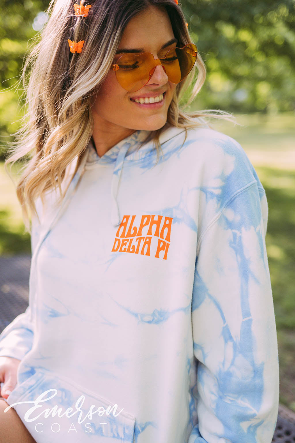 Be bright with the Alpha Delta Pi PR Blue Tie Dye Hoodie!