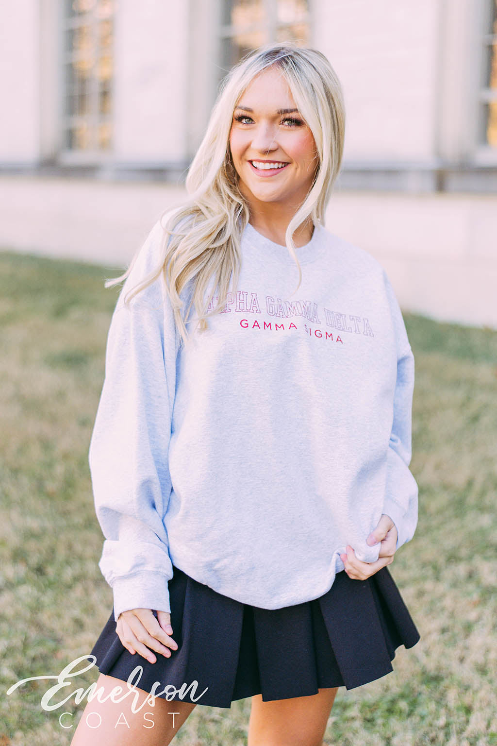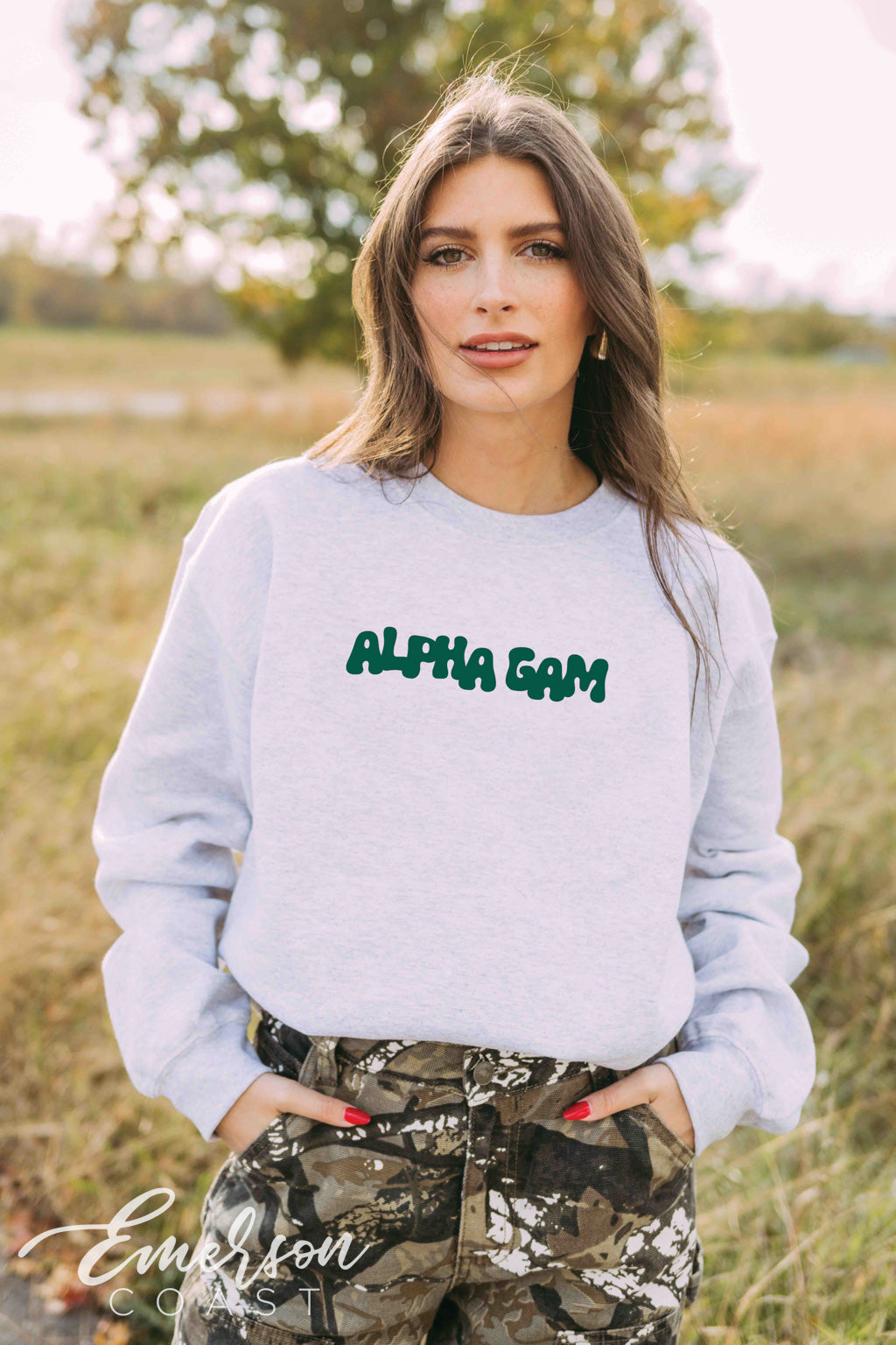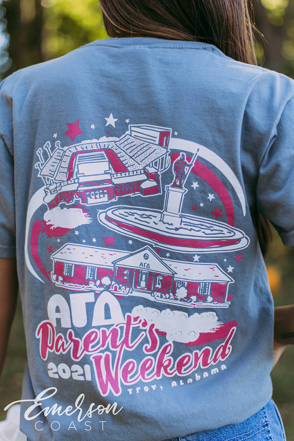 Tri Delta at Arkansas captured the magic of the Amalfi Coast for Bid Day with custom slouchy tees — white for members, cloud blue for new girls. Styled with flowy skirts and neck scarves, the whole vibe was straight out of a summer postcard.