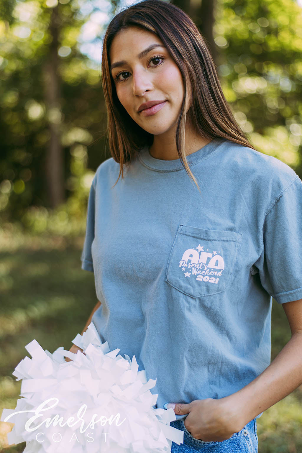 ZTA at Georgia Tech rocked custom teal slouchy tees for Recruitment, pairing them with white denim for a clean, polished look. The bold color choice made a statement while keeping things fun, fresh, and totally on brand.