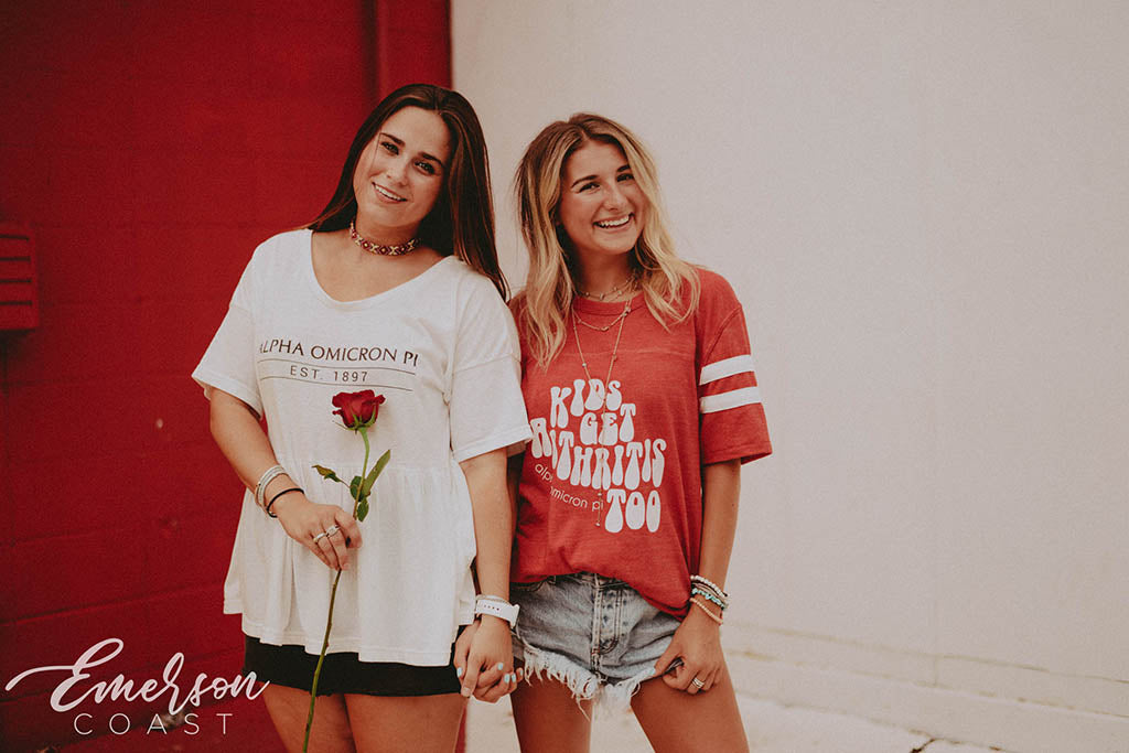 ZTA at Georgia Tech rocked custom teal slouchy tees for Recruitment, pairing them with white denim for a clean, polished look. The bold color choice made a statement while keeping things fun, fresh, and totally on brand.