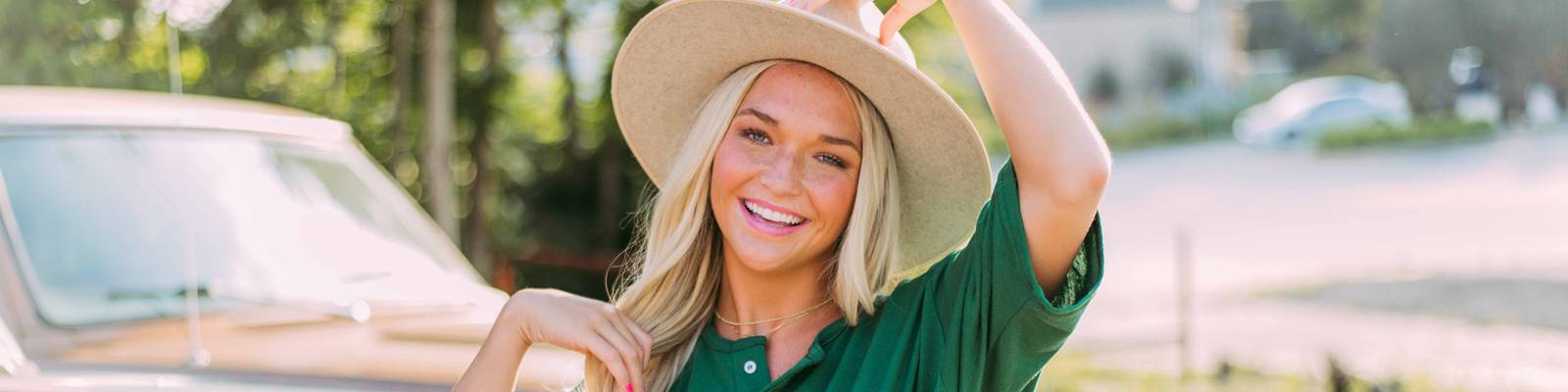 Add bubble braids and a AOII trucker hat to complete the outfit!