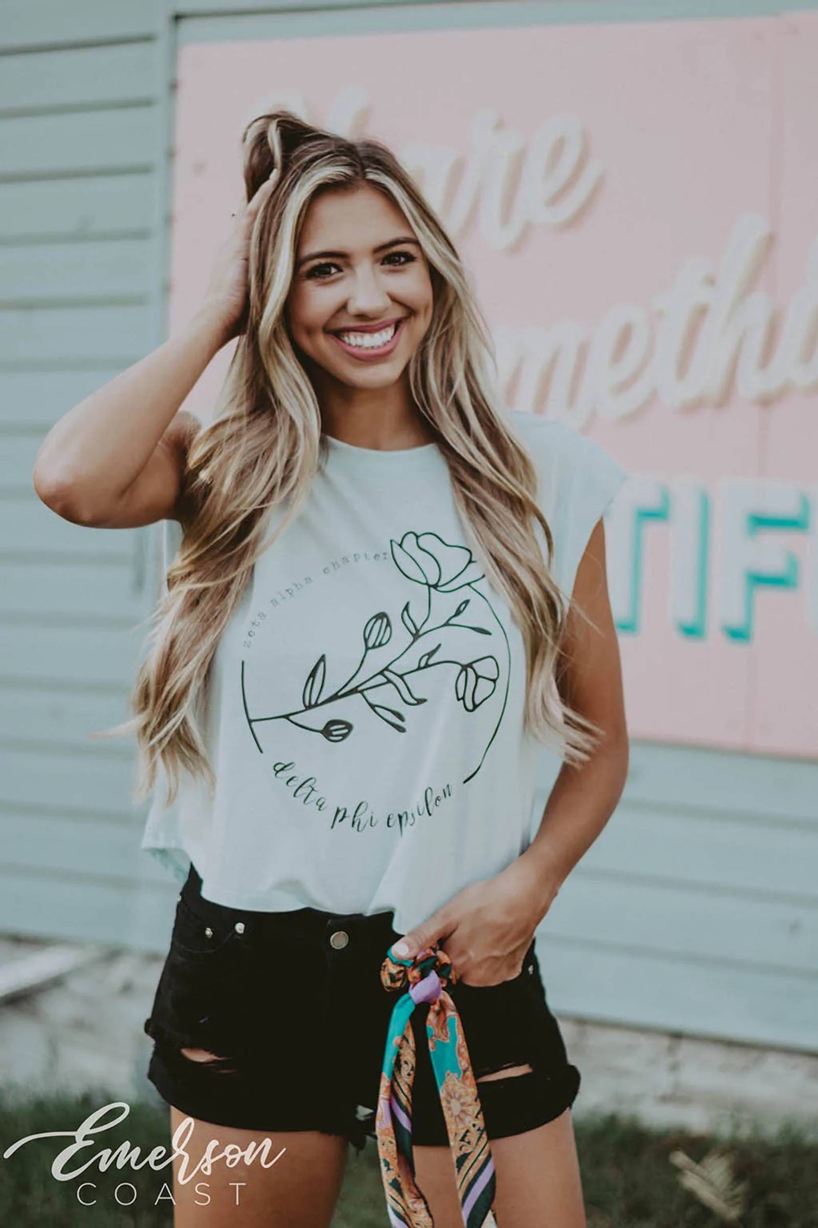 Soft fabric, a relaxed cropped fit ... what more could you want in a sorority tshirt??