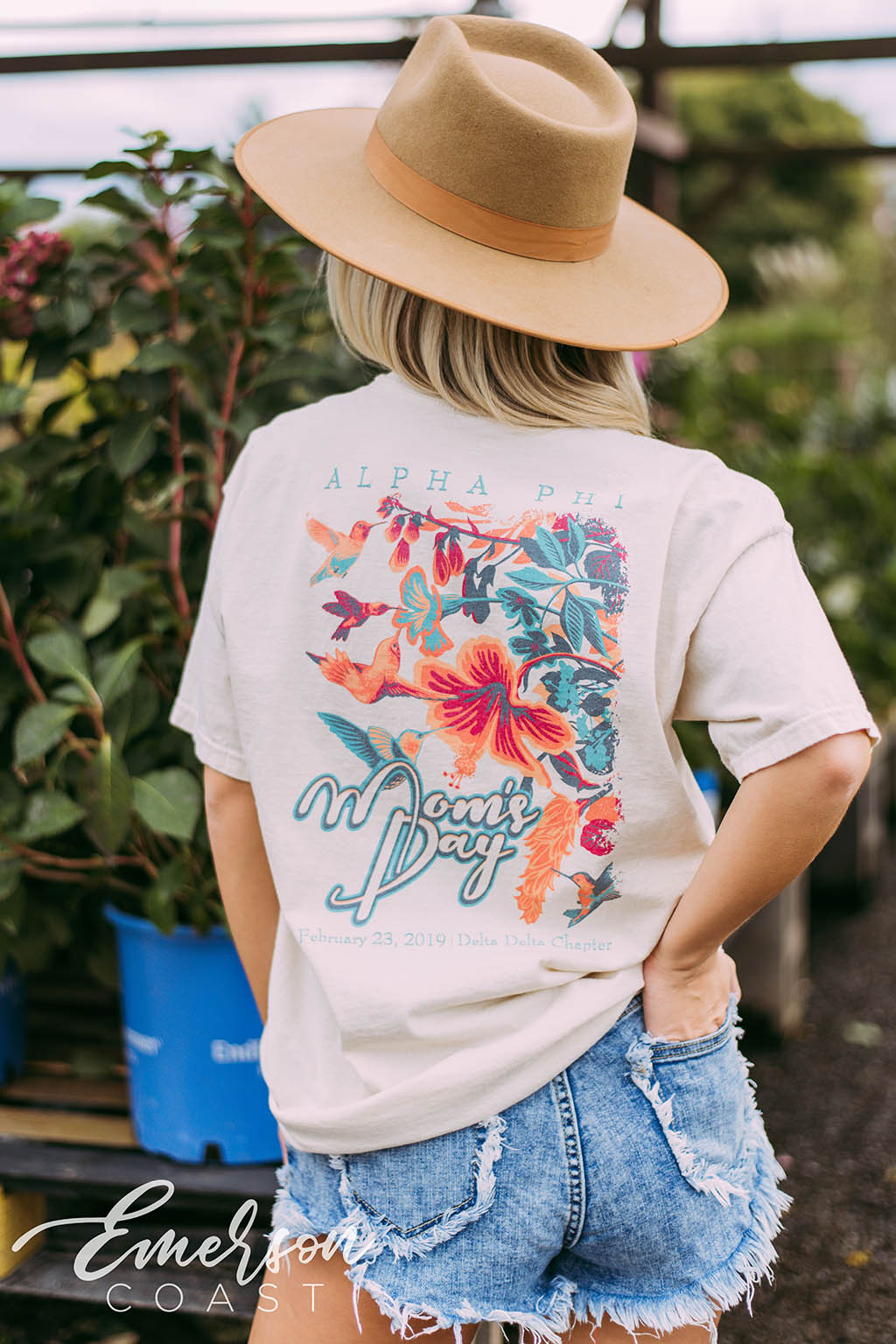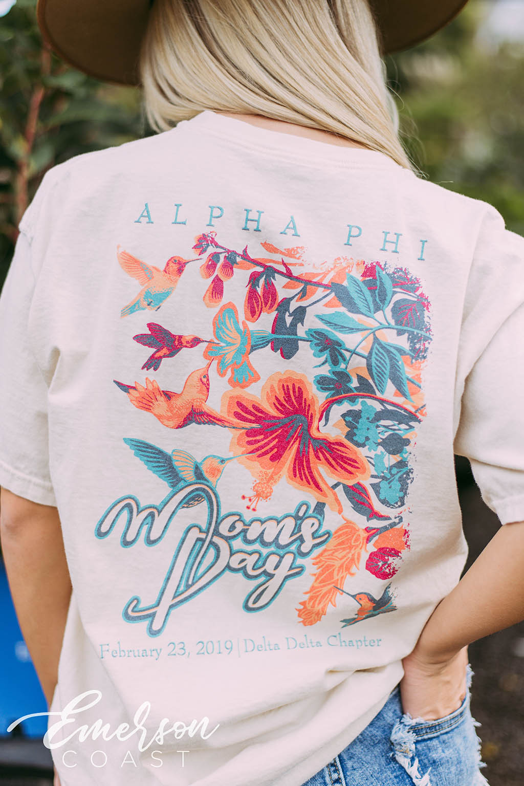 A Phi will be loving this bold design that features tropical flowers on the back, complete with hummingbirds flying around.