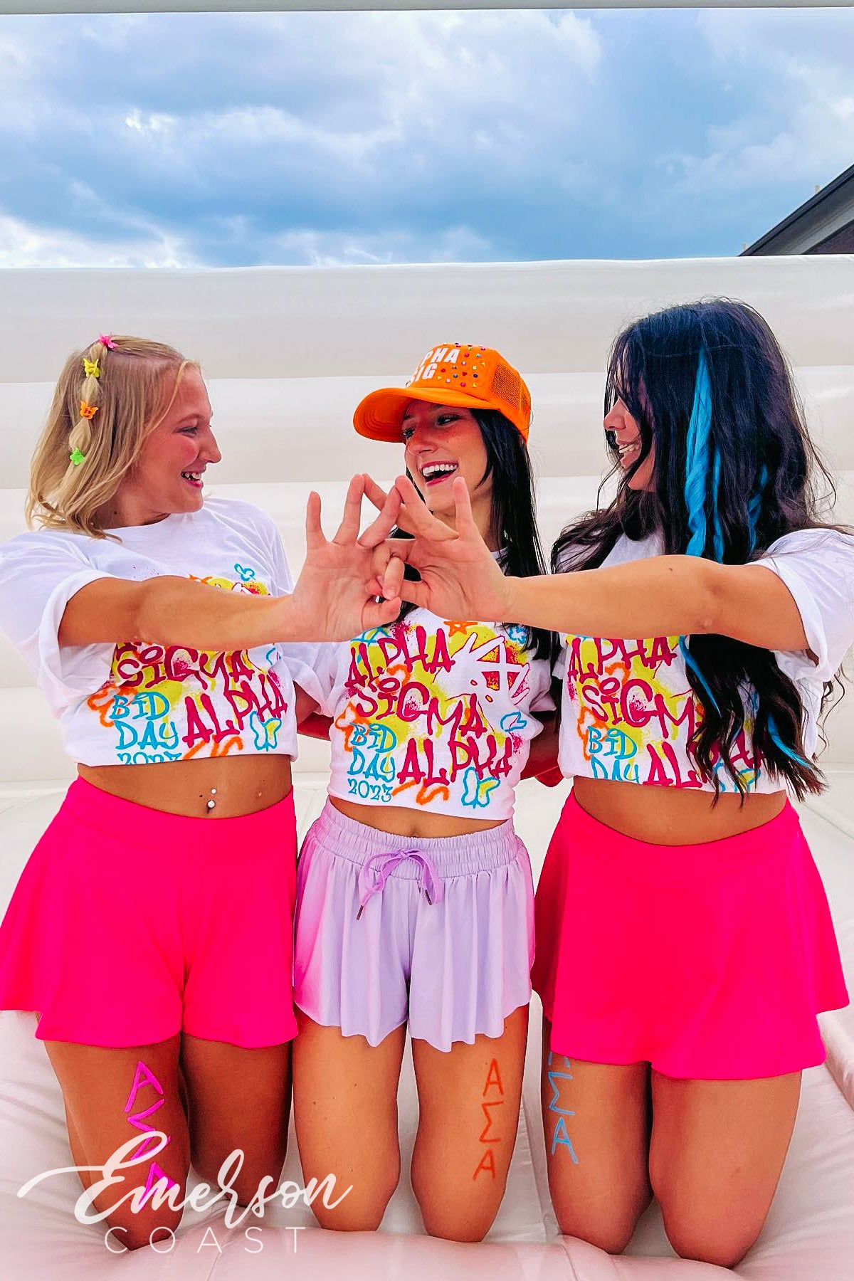 This colorful graffiti style design is so fun for your sorority bid day! 🤍
