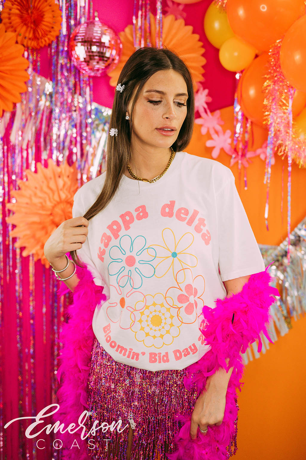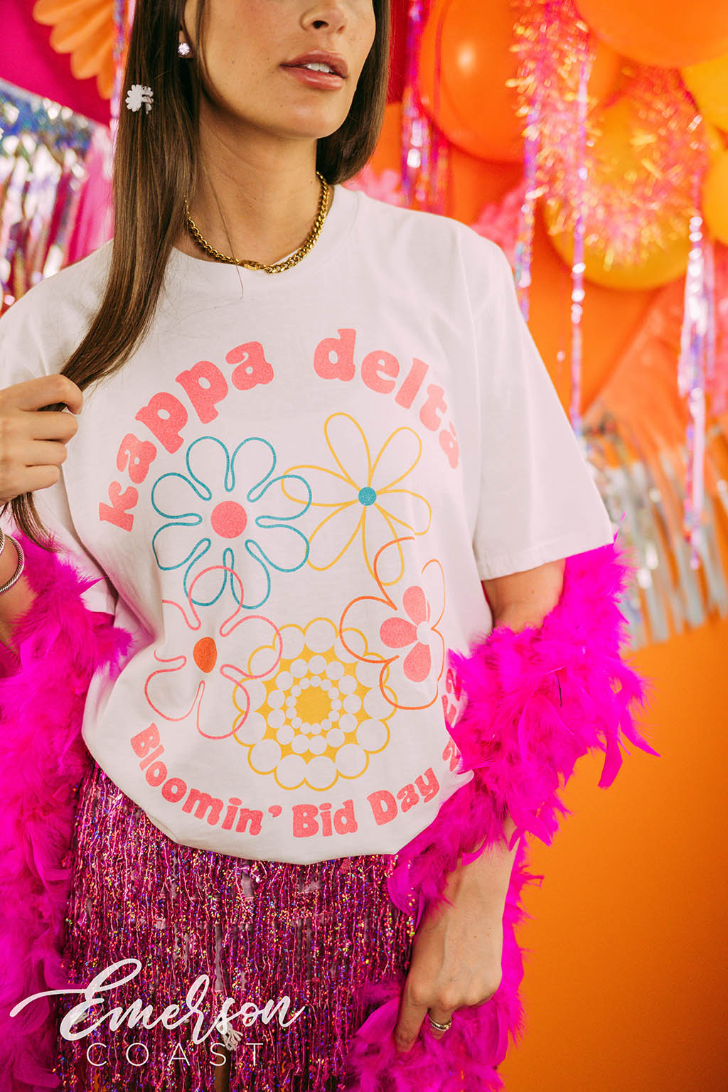 KKG at Florida State kept it effortlessly cool for Open Round with white slouchy tees styled with classic denim. Simple, chic, and easy to accessorize — the perfect uniform for making first impressions and showing off their signature style.