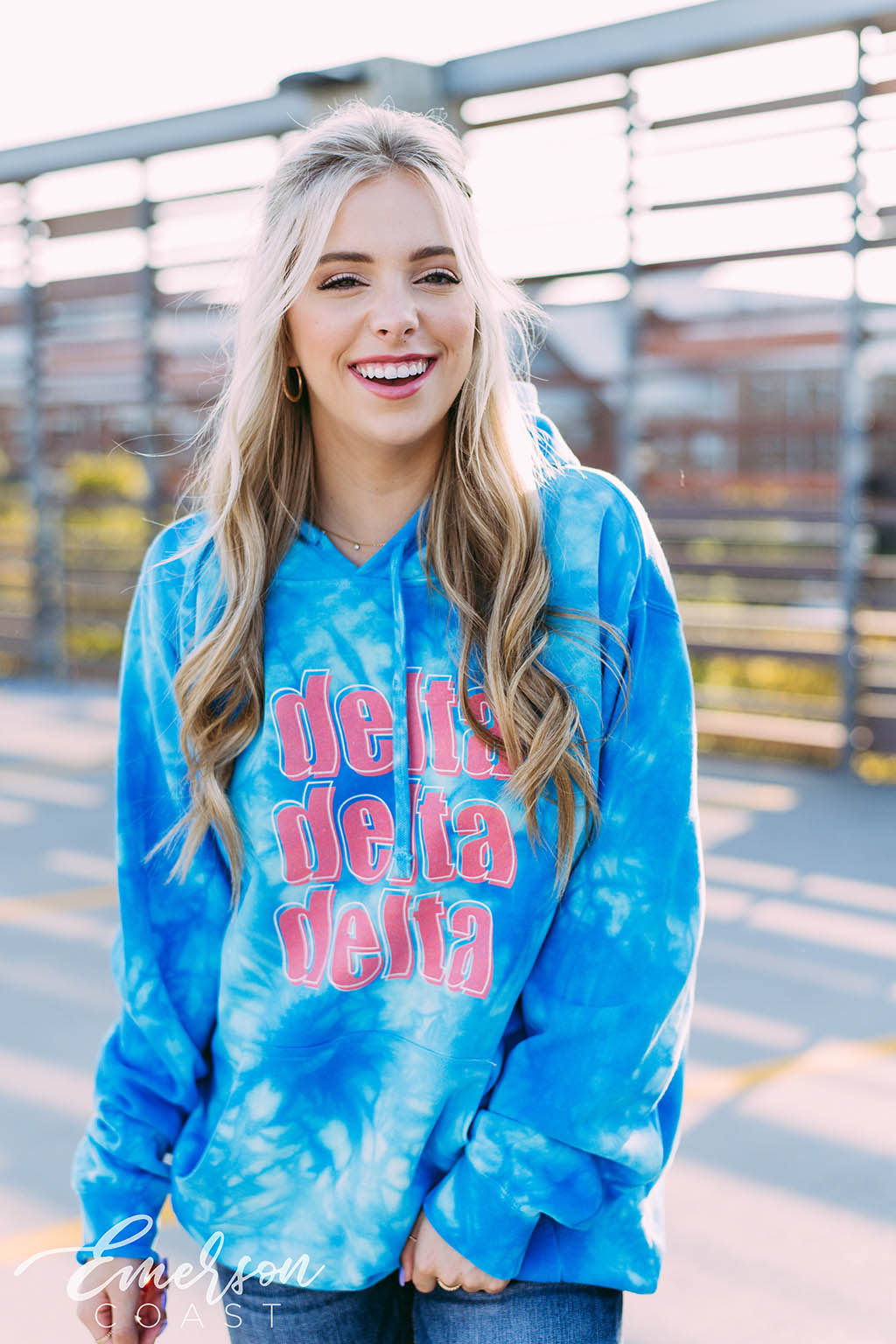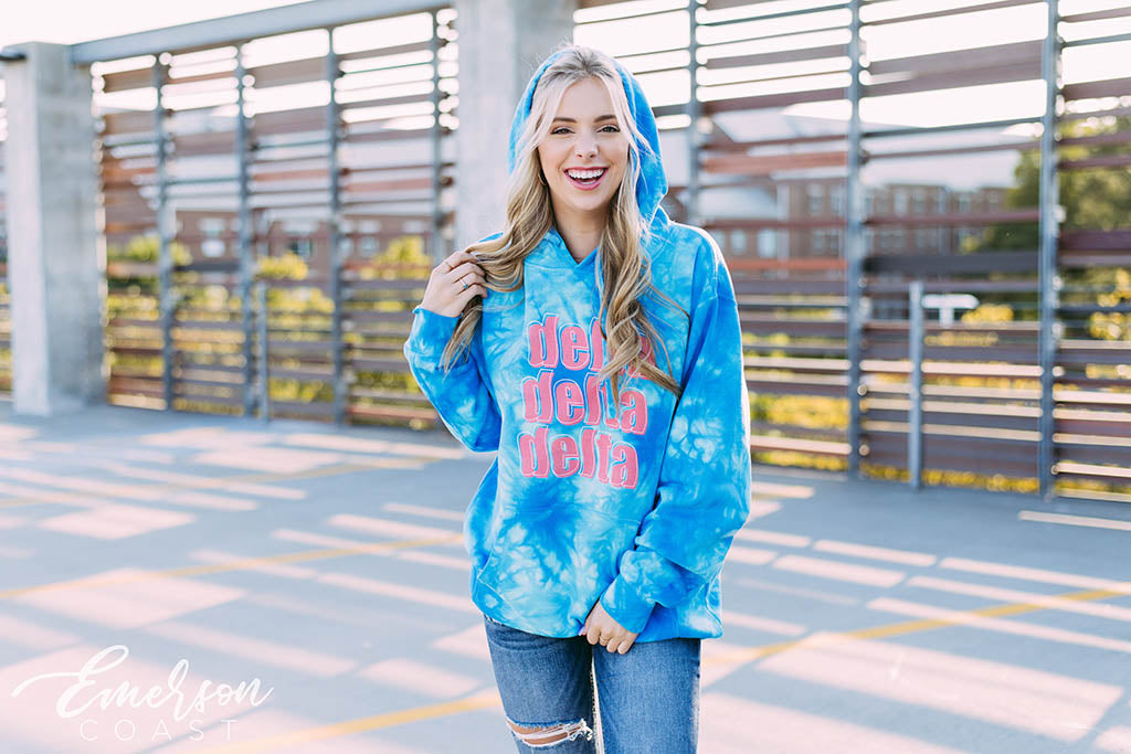 Be bold with the Delta Delta Delta Crystal Wash PR Hoodie!