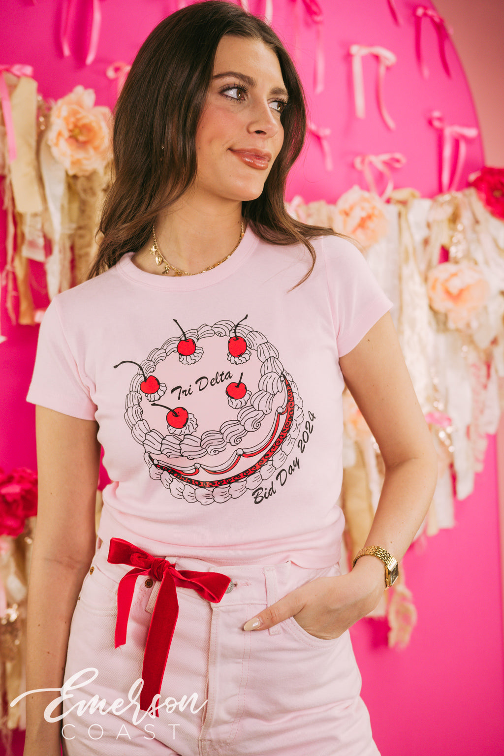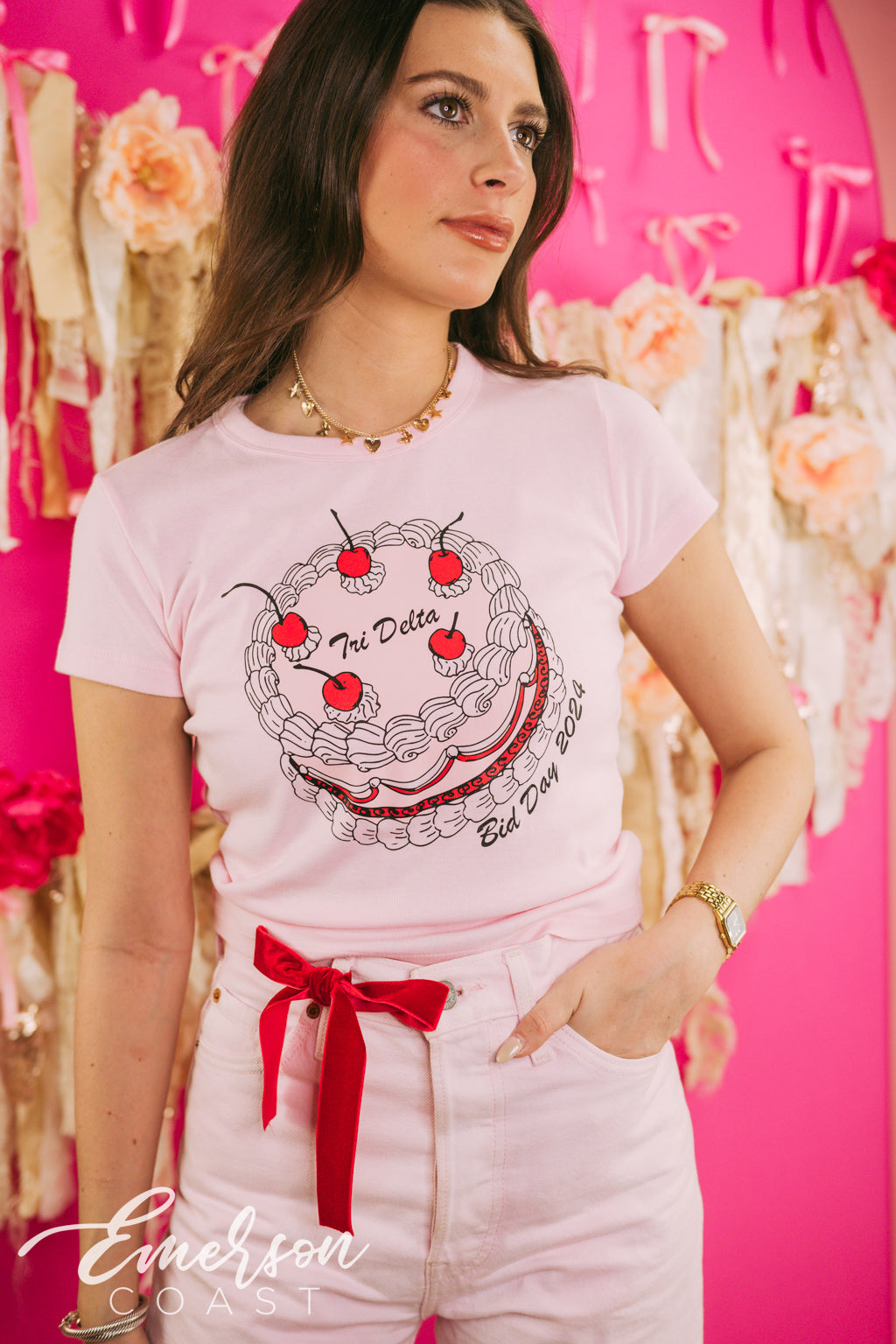 Tri Delta Coquette Cake Bid Day Baby Tee