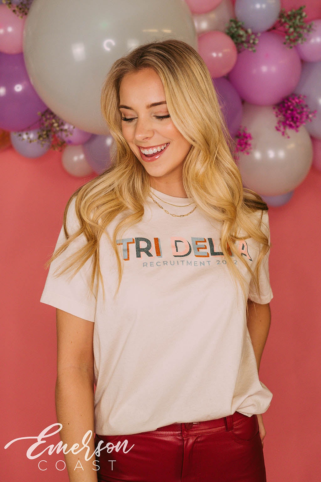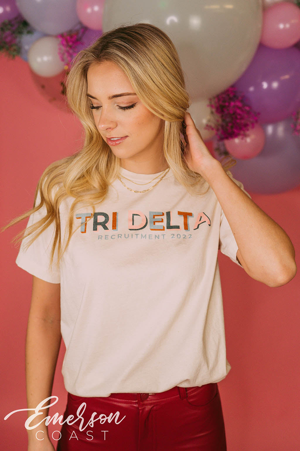 Keep it chill with the Tri Delta Oatmeal Recruitment Tee!