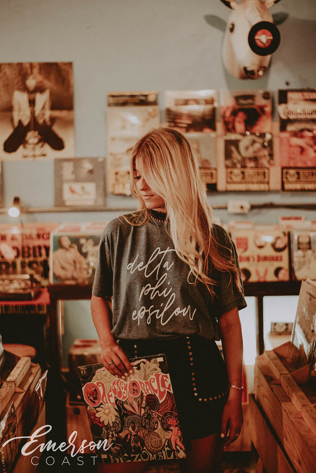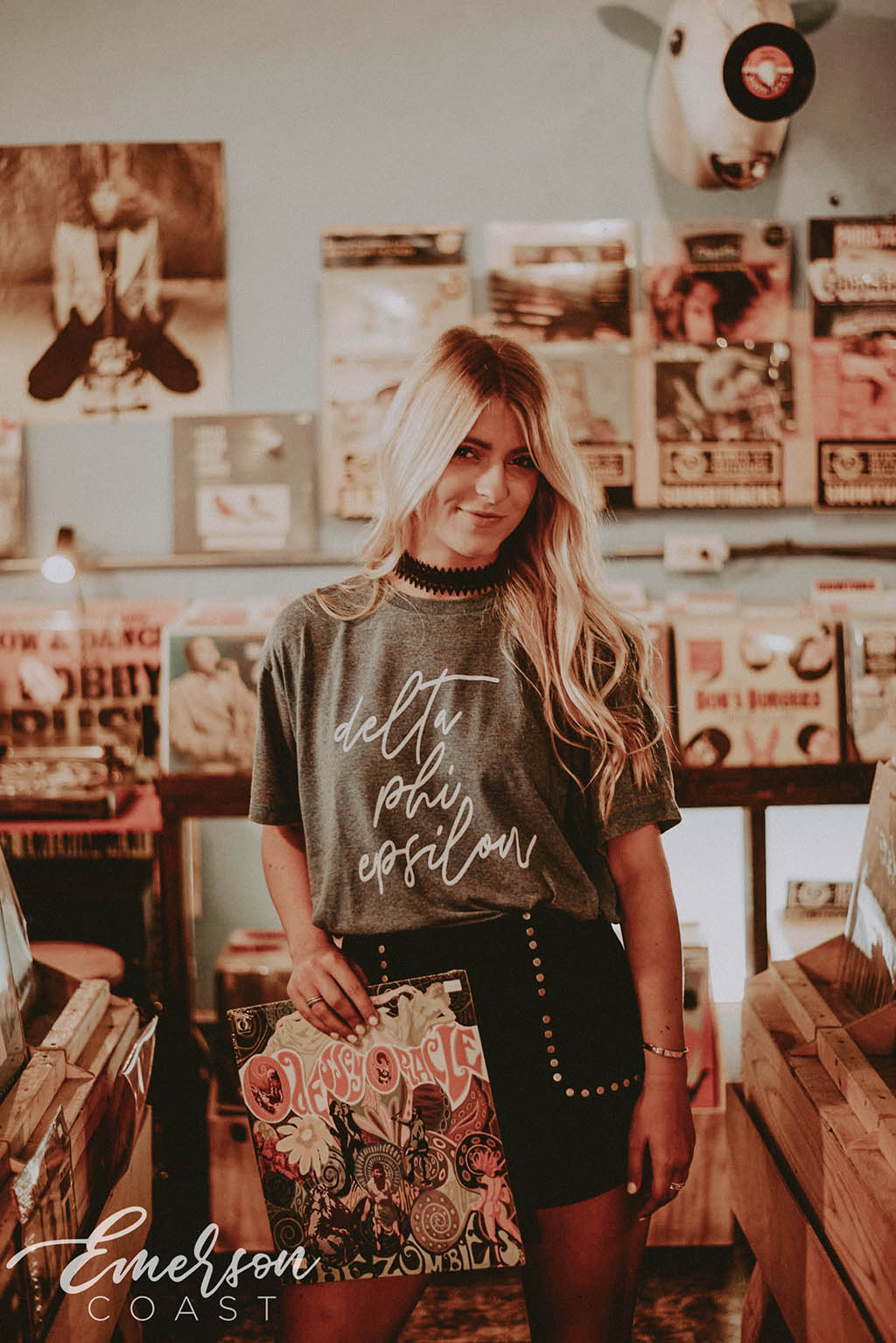 ZTA at Georgia Tech rocked custom teal slouchy tees for Recruitment, pairing them with white denim for a clean, polished look. The bold color choice made a statement while keeping things fun, fresh, and totally on brand.