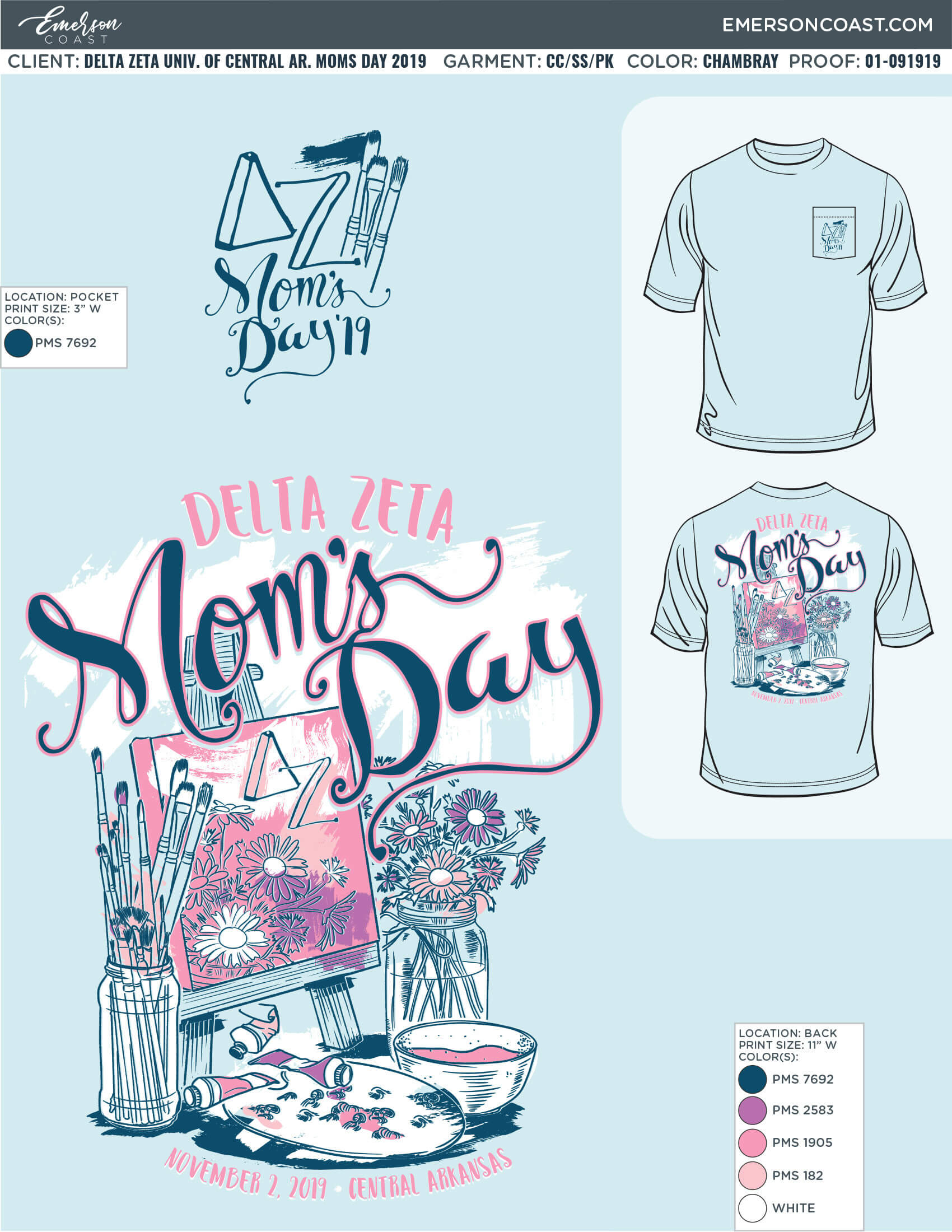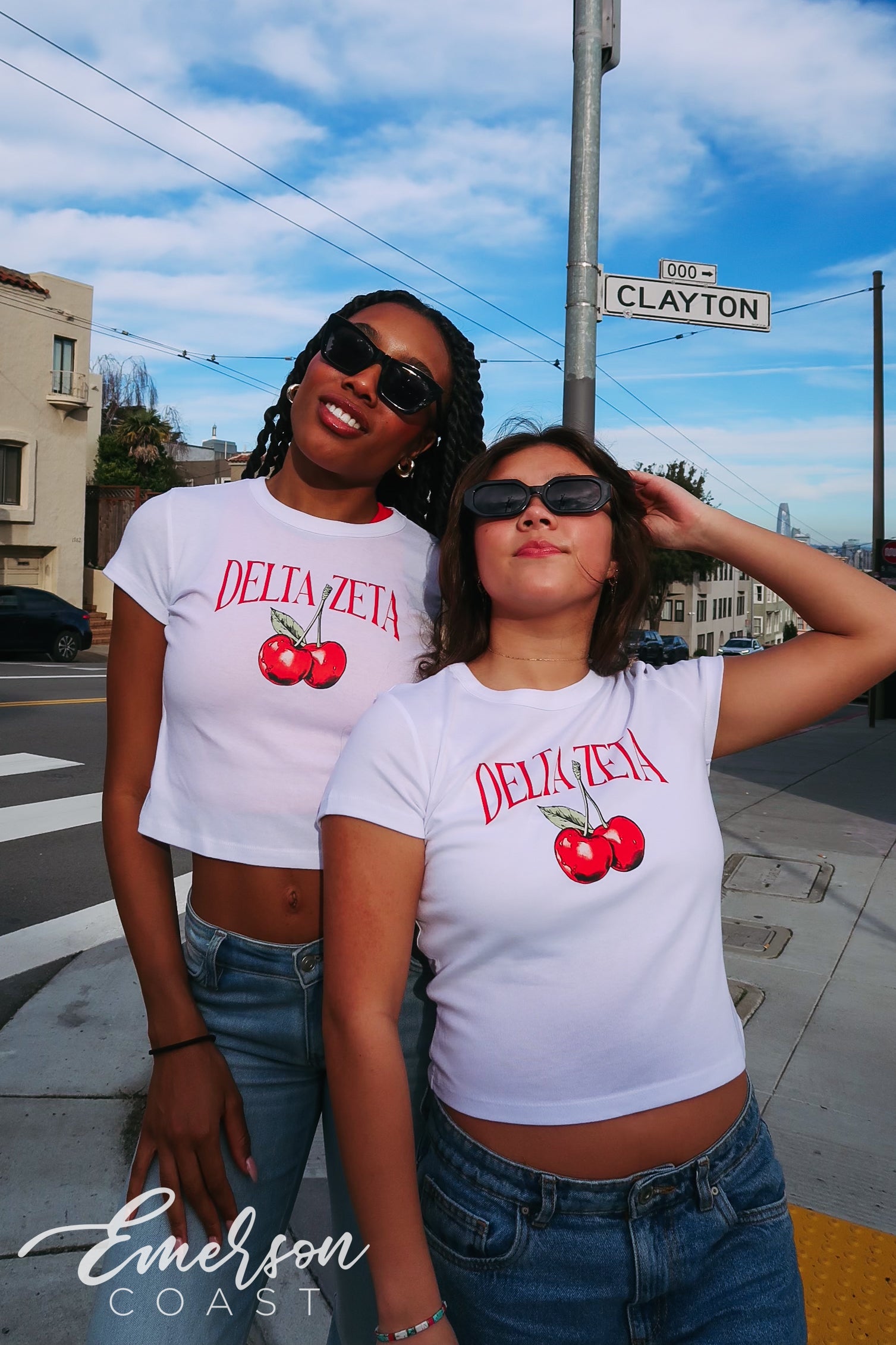 Tri Delta at Arkansas captured the magic of the Amalfi Coast for Bid Day with custom slouchy tees — white for members, cloud blue for new girls. Styled with flowy skirts and neck scarves, the whole vibe was straight out of a summer postcard.