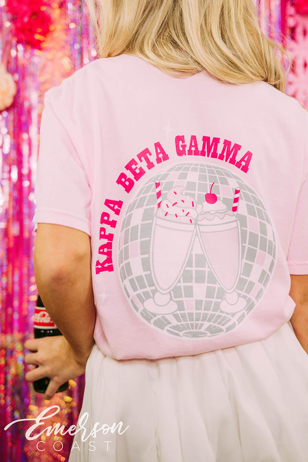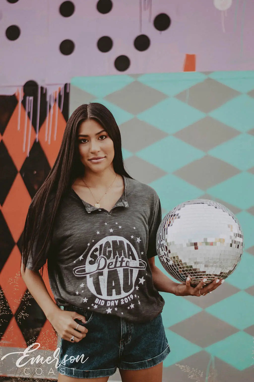 These designs are here for your inspiration so you can make t-shirts your chapter will LOVE. We can turn any of your ideas into a tee, all designs and styles are completely customizable to your sorority! Lovin all the Disco Tees but want the words personalized for your chapter? EASY! All about the disco theme, but want a different design? We'll make it happen! Just want something new but not quite sure what shirt style or design you'd like? We're here to help!