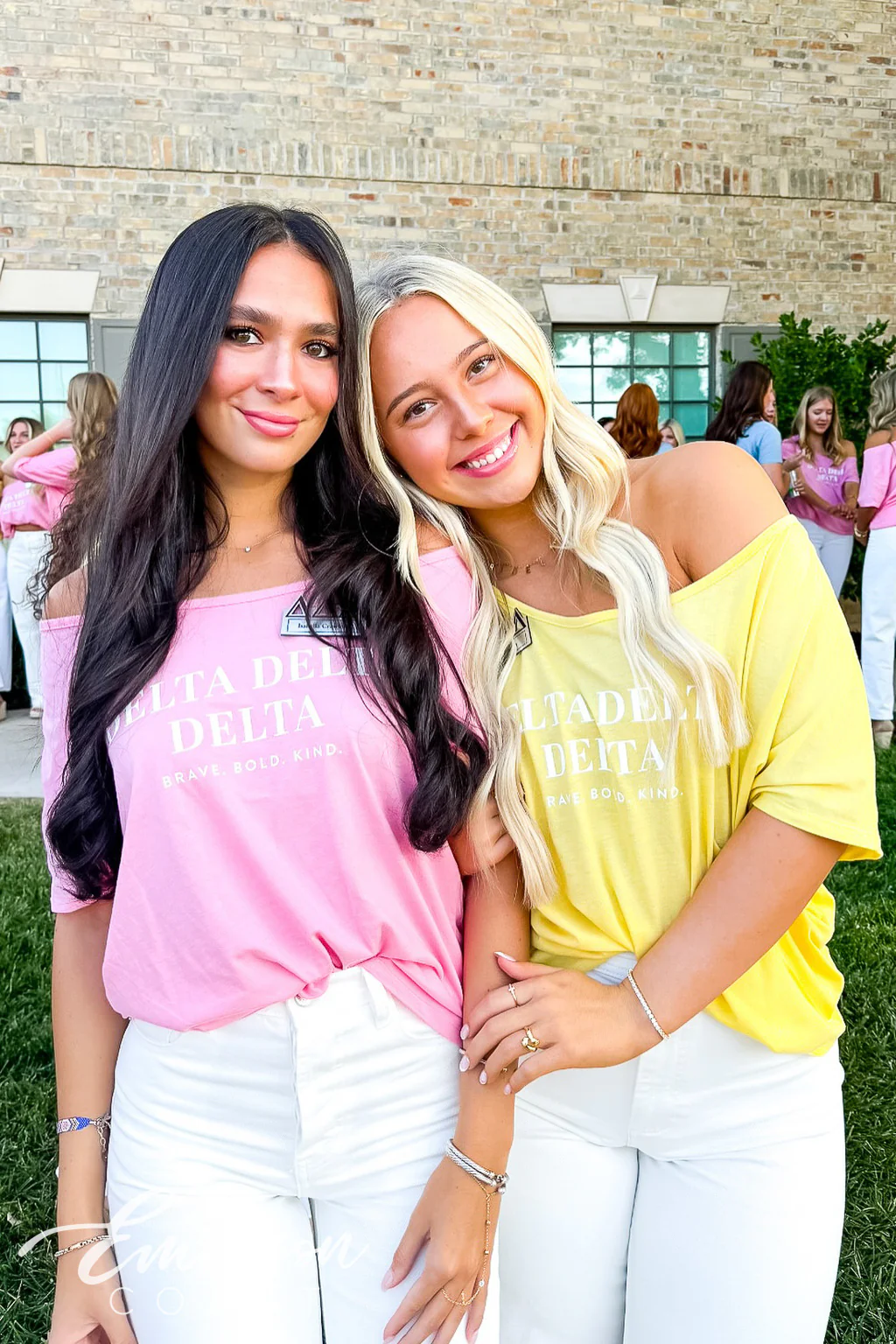 The Rolled Cuff Tee is a perfect style for recruitment and philanthropy events. Fully customizable colors let you create the perfect look for your chapter 🎨.
