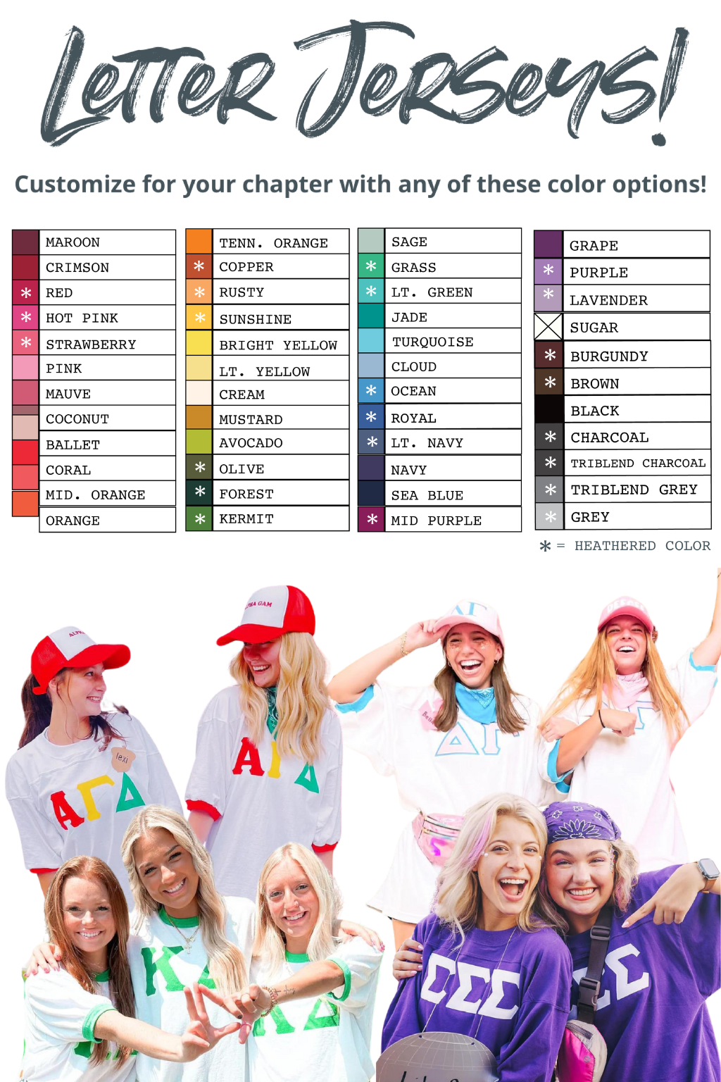 Gamma Phi at Oklahoma State floated into Bid Day with the dreamiest hot air balloon theme and the cutest pink colorblock ringer tees! Featuring soft pastel Greek letters, these tops added a fun pop of retro charm to an already magical day.