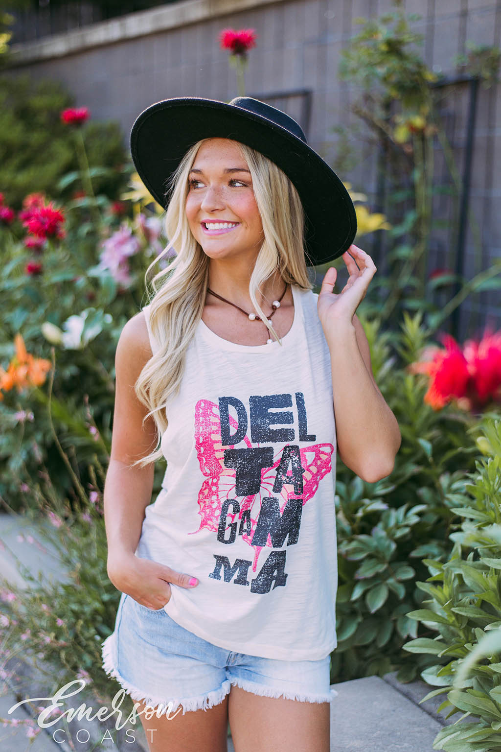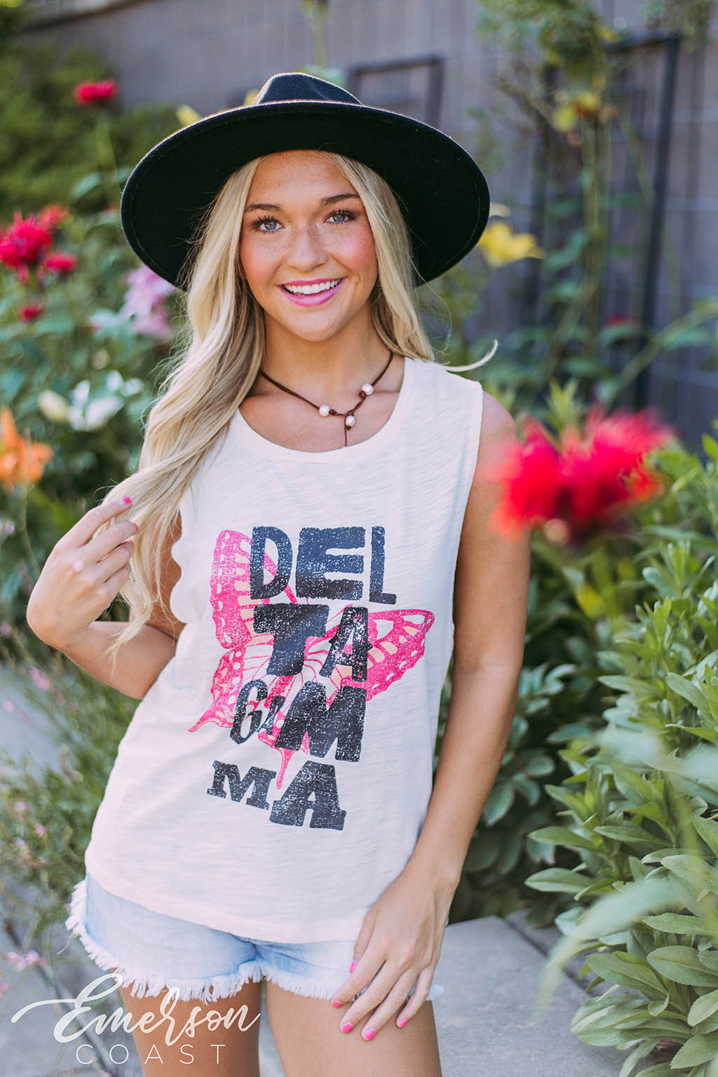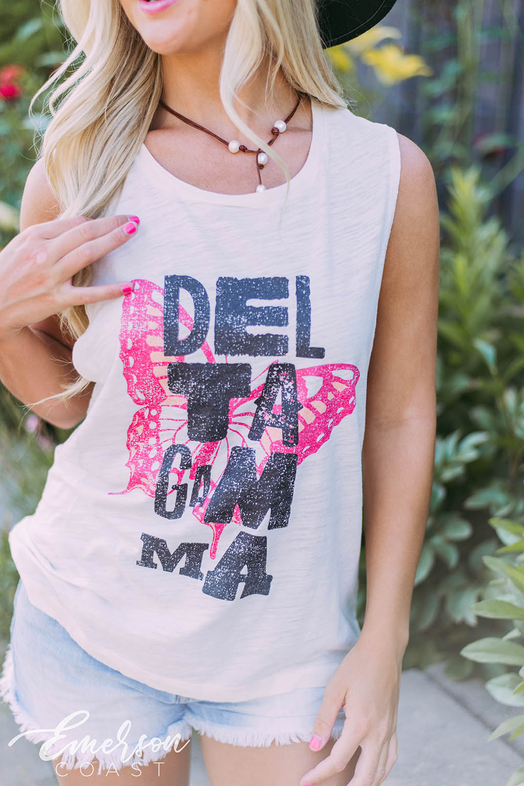 Fly away with the Delta Gamma Butterfly Muscle Tank!
