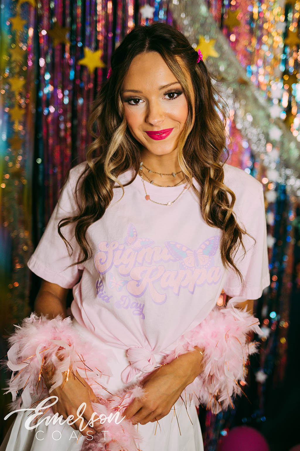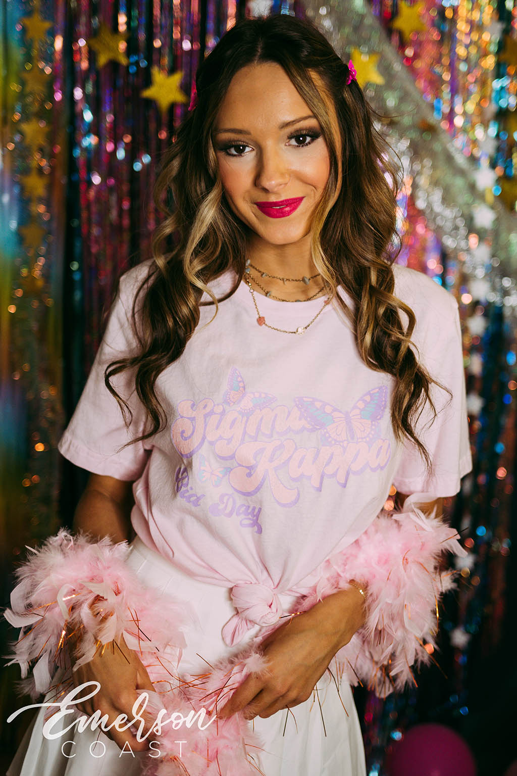 Fly away with the Sigma Kappa Butterfly Bid Day Tee!