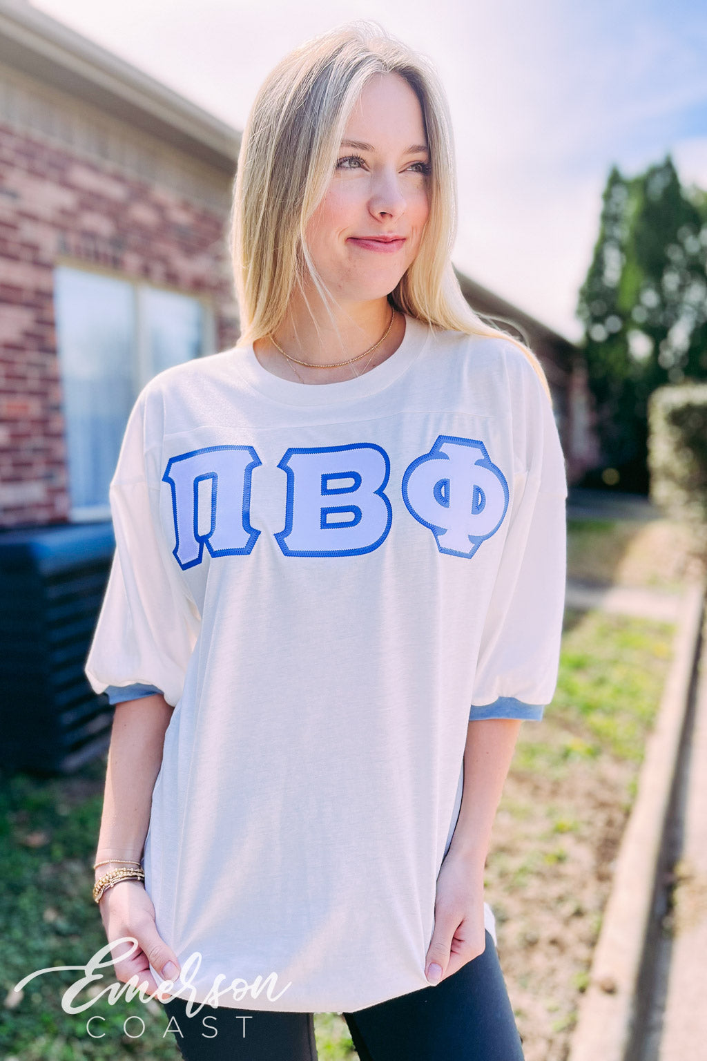 Ready to rep your letters in serious style? Our totally customizable Greek Letter Jersey is the perfect go-to for sorority recruitment, bid day, and every sisterhood event in between! With over 45 color options, you can mix and match to create a look that’s as bold as your Greek pride.