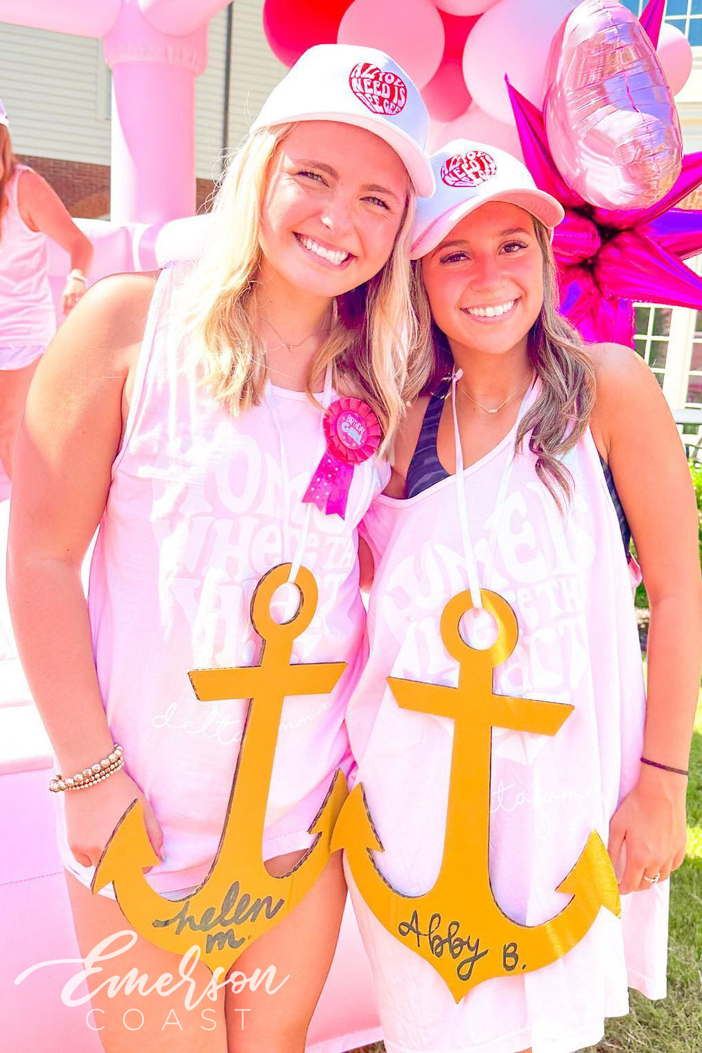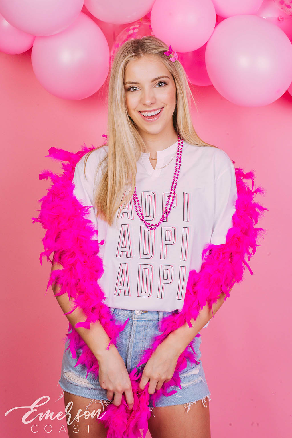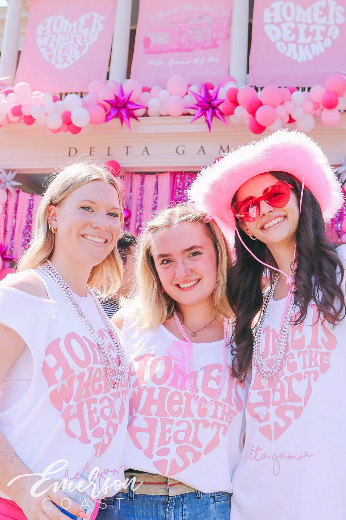 Gamma Phi at Oklahoma State floated into Bid Day with the dreamiest hot air balloon theme and the cutest pink colorblock ringer tees! Featuring soft pastel Greek letters, these tops added a fun pop of retro charm to an already magical day.