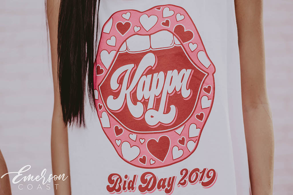 The designs you can create with this theme are ENDLESS! The Sigma Kappa Retro Bid Day Tank is a special design that everyone will want. It is comfortable but also so trendy. The KKG Bid Day Lips Tank is a must-have design for Bid Day 2021.Your chapter will fall in love with the Kappa Delta Heart T-shirt but of its fun colors and unique design. All of these themes are fun-loving and will make you stand out on bid day. Heart themed bid day designs will make each of your new members feel loved.