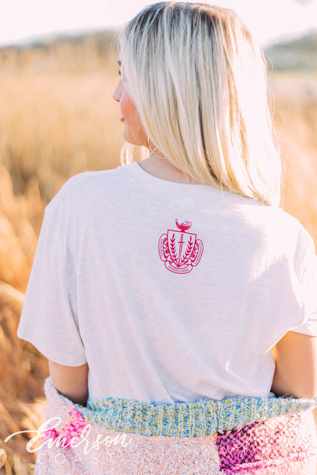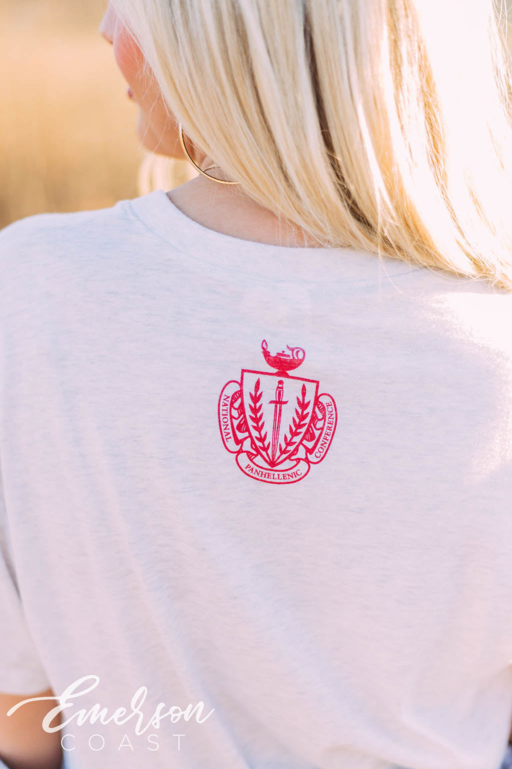 The Panhellenic crest on the back makes this a great style for campus wide events.