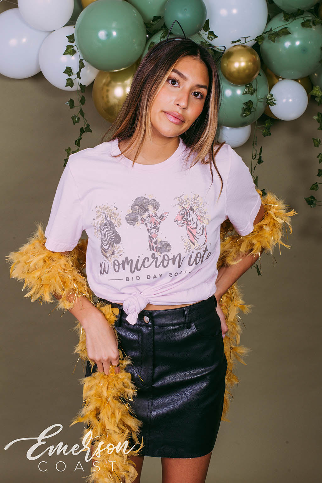 Get wild with the Xi Omicron Iota Jungle Bid Day Tee!