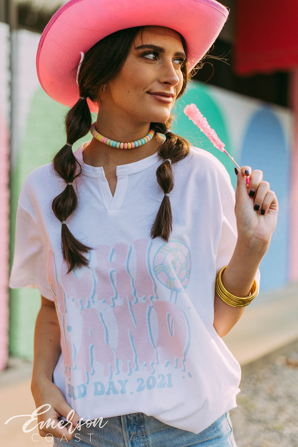 Chi O at Texas A&M brought the spirit with bold red ringer tees for Bid Day, featuring their “How ‘Bout Them Chi O's” design! The look was confident, classic, and the perfect way to welcome new members with major cardinal & straw energy.
