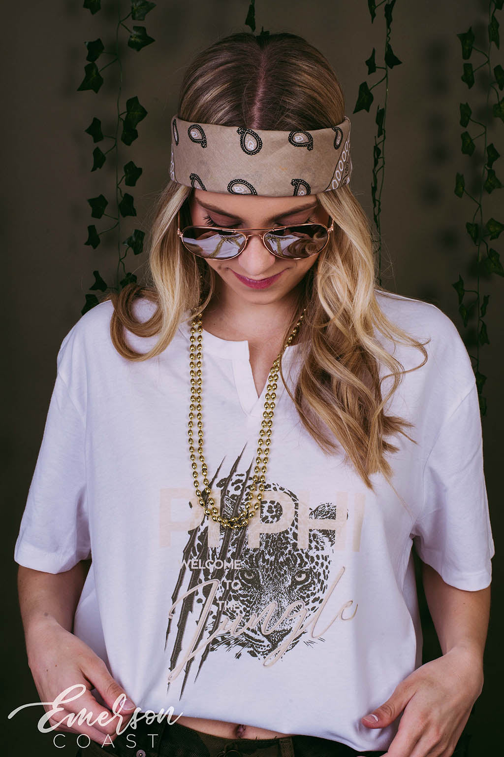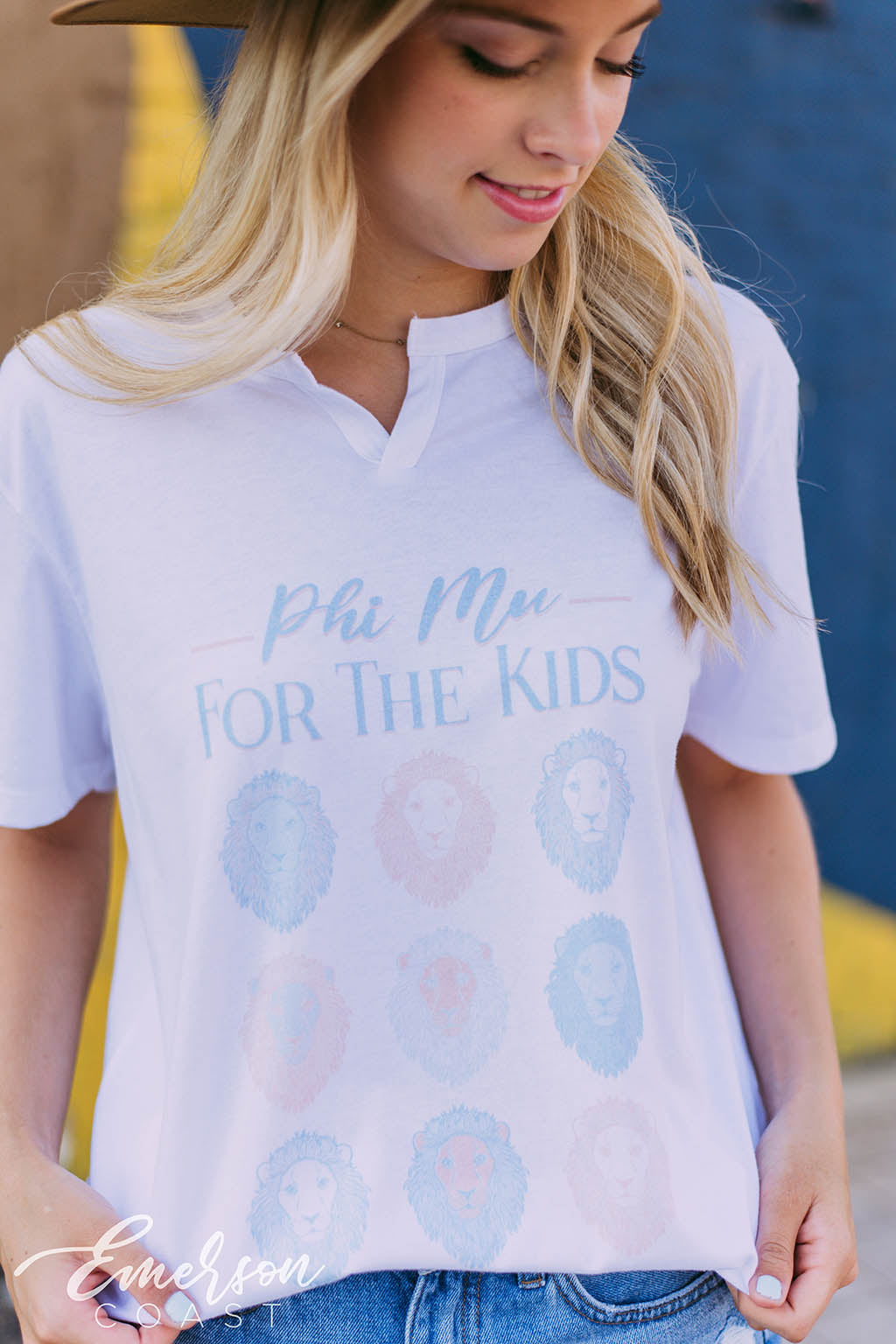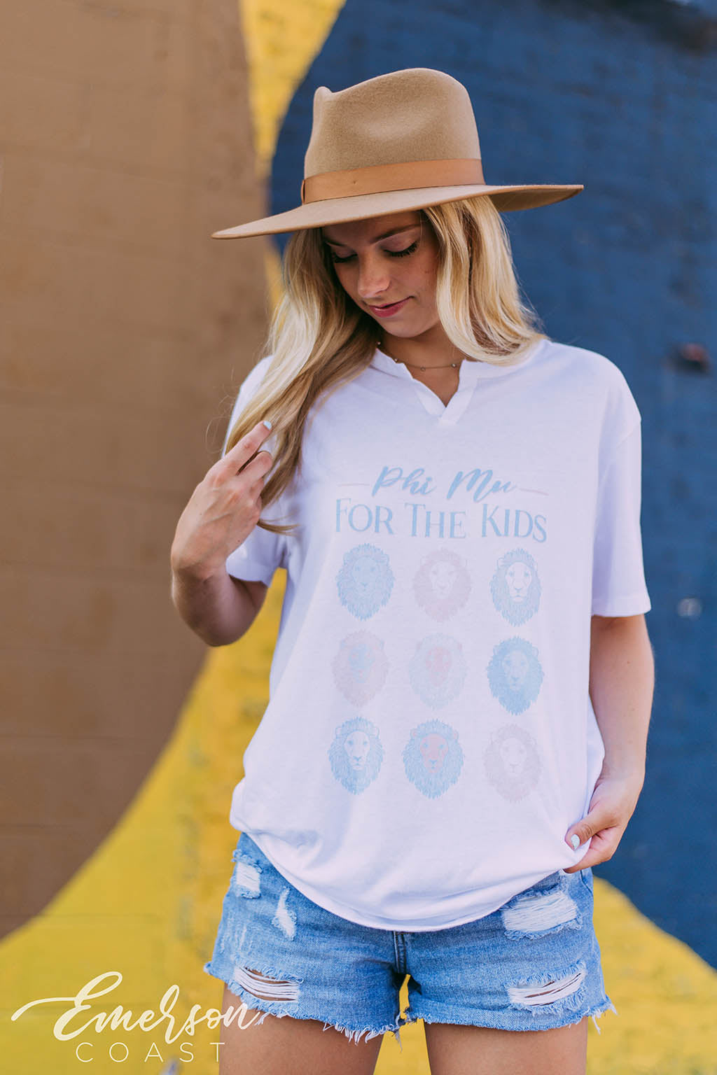 Tri Delta at Arkansas captured the magic of the Amalfi Coast for Bid Day with custom slouchy tees — white for members, cloud blue for new girls. Styled with flowy skirts and neck scarves, the whole vibe was straight out of a summer postcard.