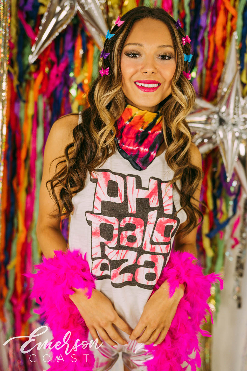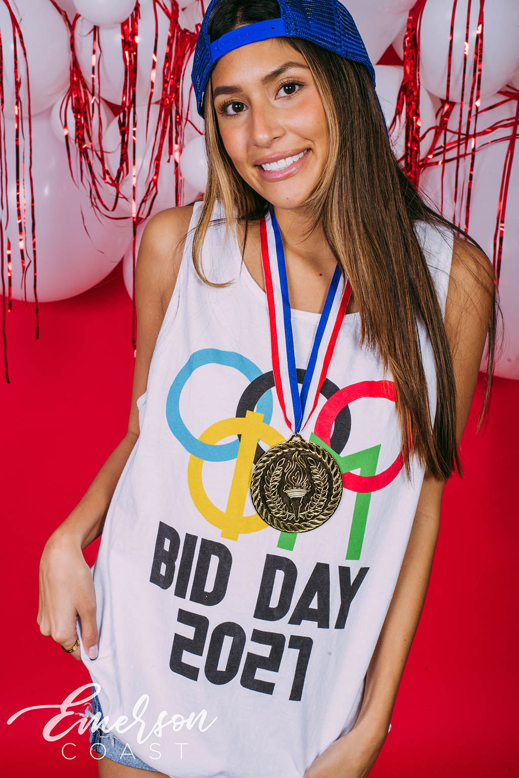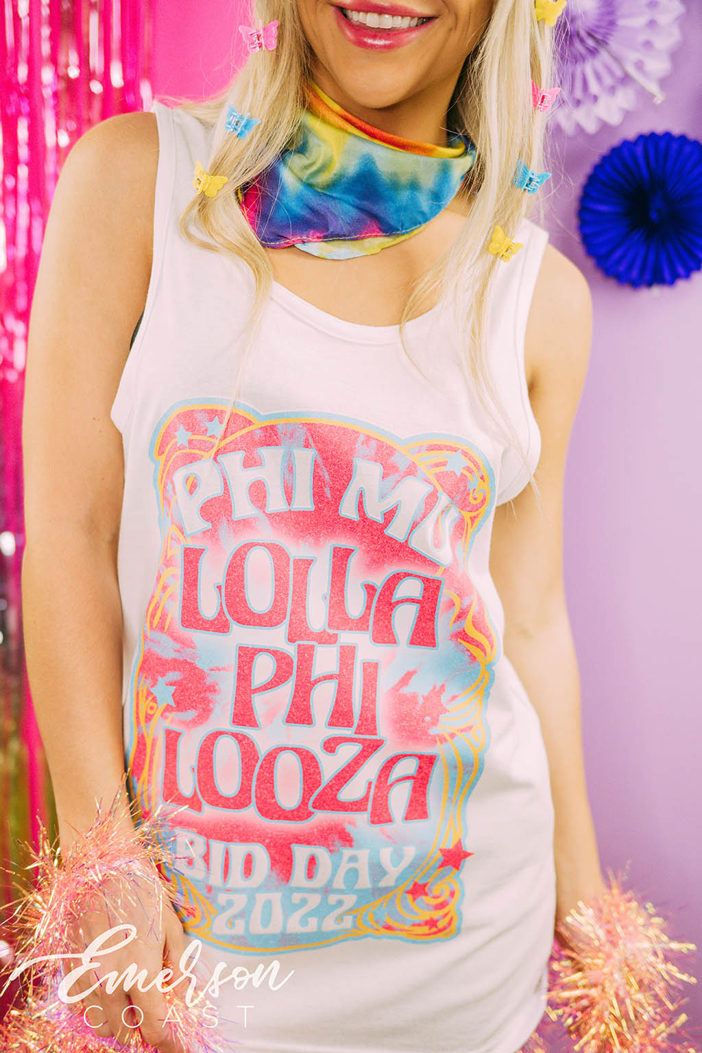 Tri Delta at Arkansas captured the magic of the Amalfi Coast for Bid Day with custom slouchy tees — white for members, cloud blue for new girls. Styled with flowy skirts and neck scarves, the whole vibe was straight out of a summer postcard.