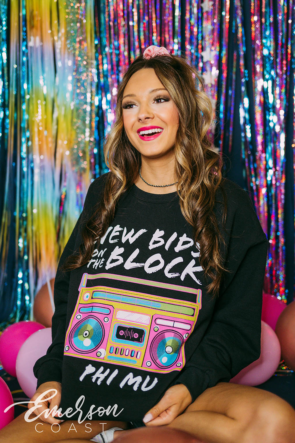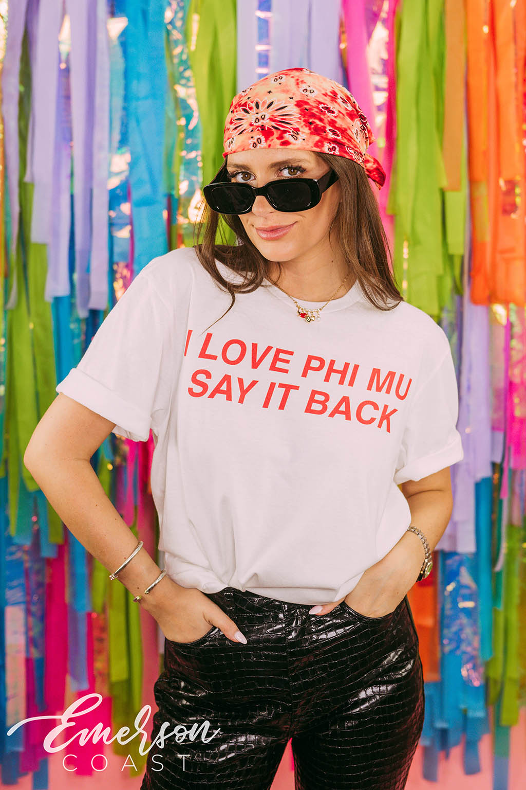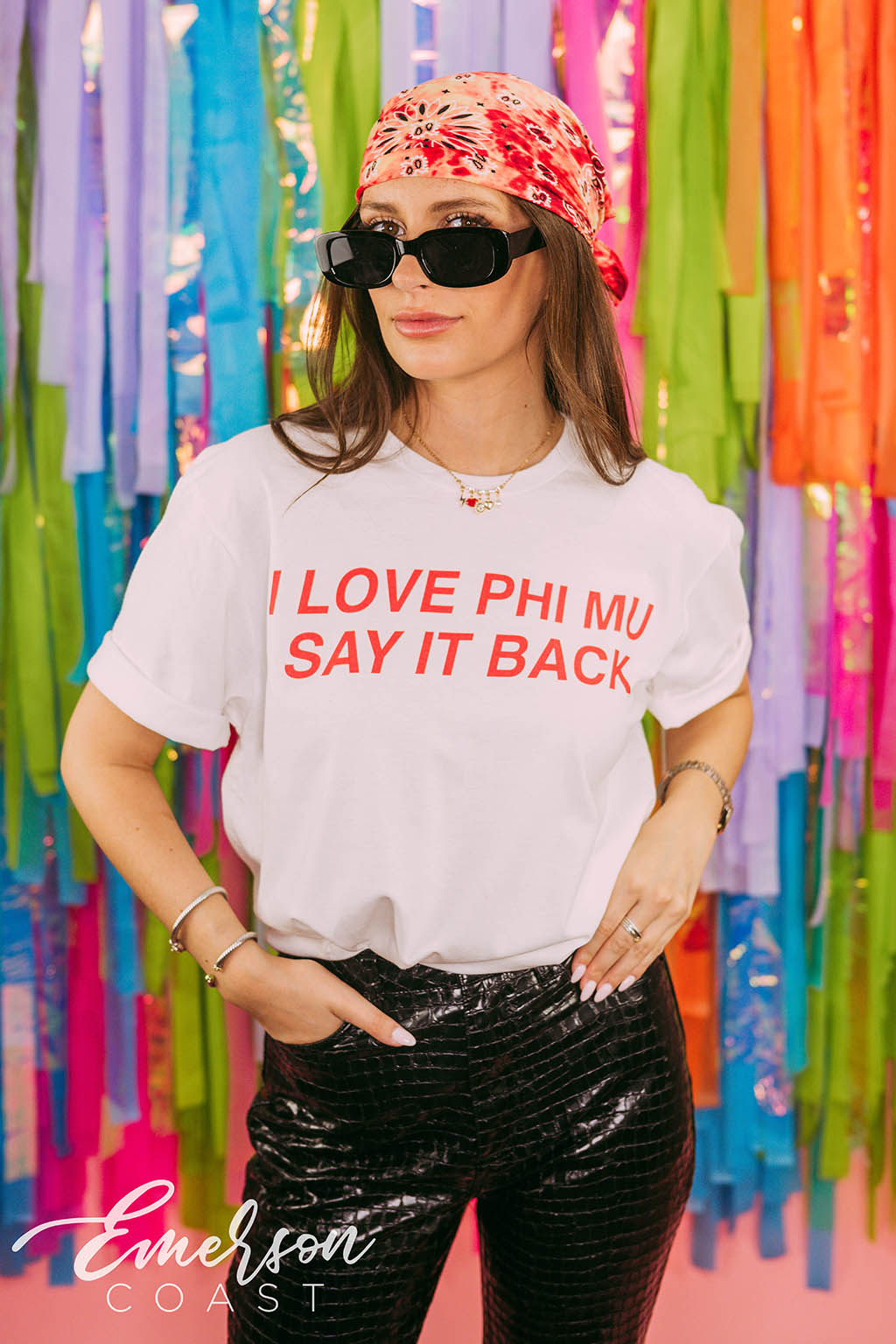 Tri Delta at Arkansas captured the magic of the Amalfi Coast for Bid Day with custom slouchy tees — white for members, cloud blue for new girls. Styled with flowy skirts and neck scarves, the whole vibe was straight out of a summer postcard.