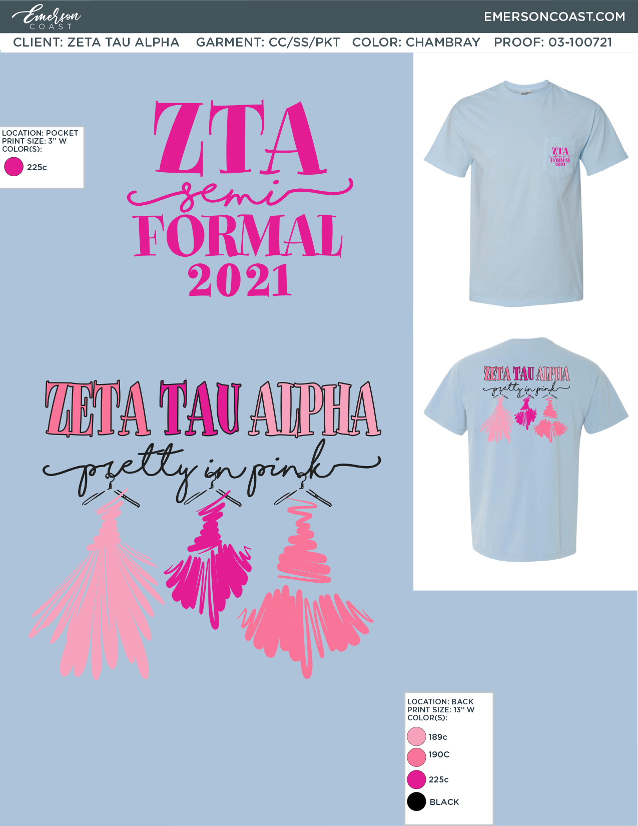 Show off your sorority spirit with the stylish "Zeta Tau Alpha: Pretty in Pink" tee from Emerson Coast. This formal t-shirt design features: