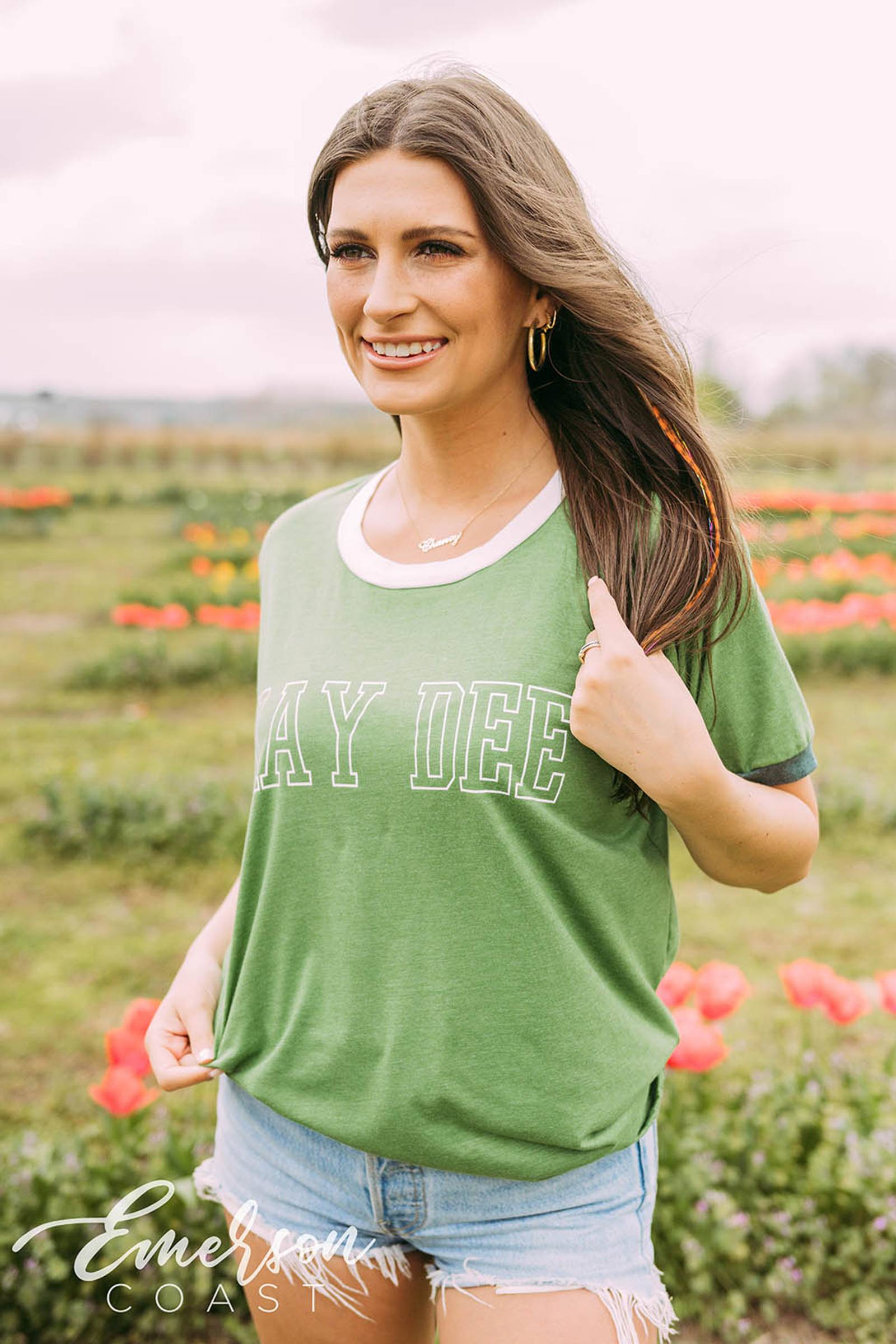 Keep it sweet with the Kappa Delta "Kaydee" PR Colorblock Ringer Tee!