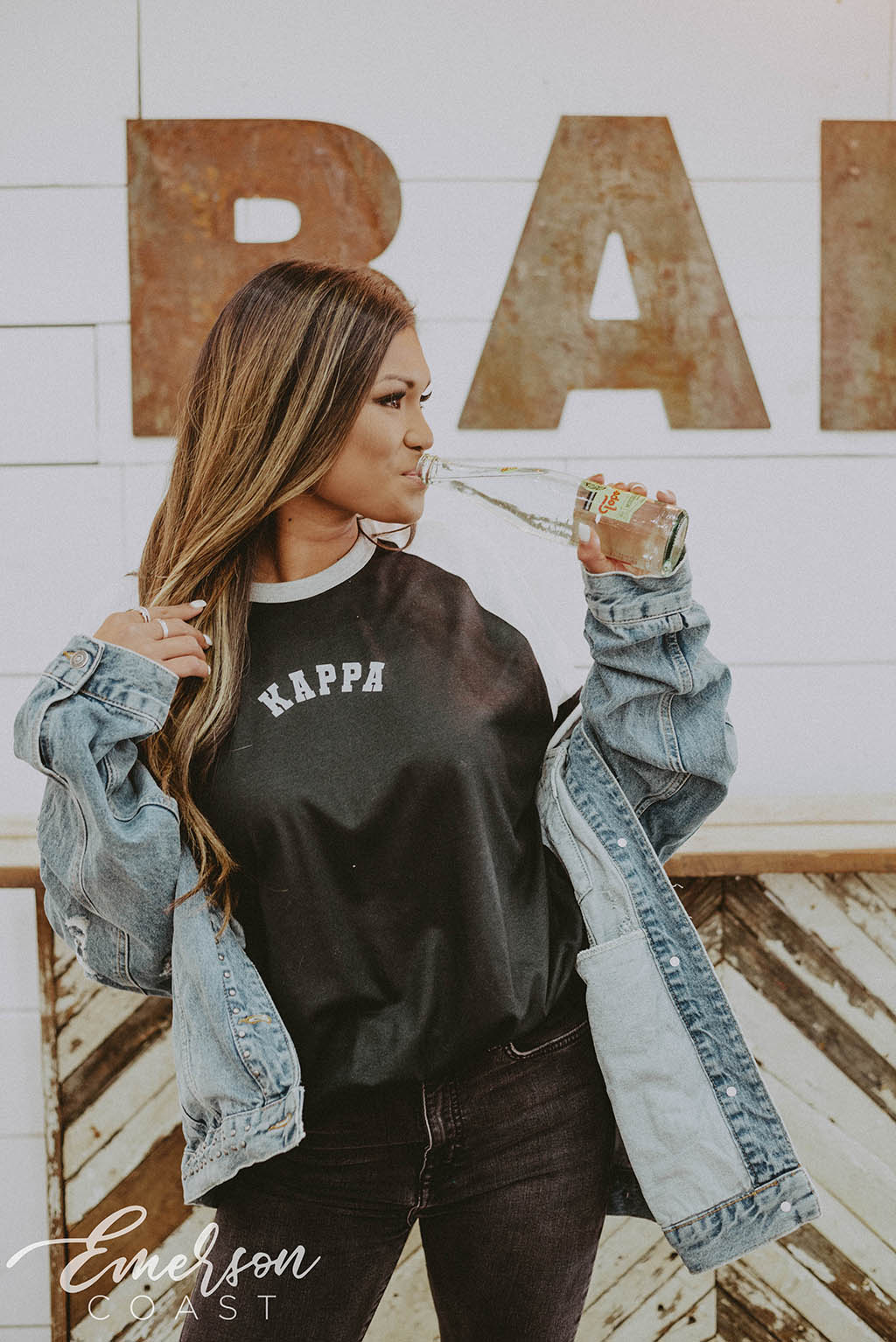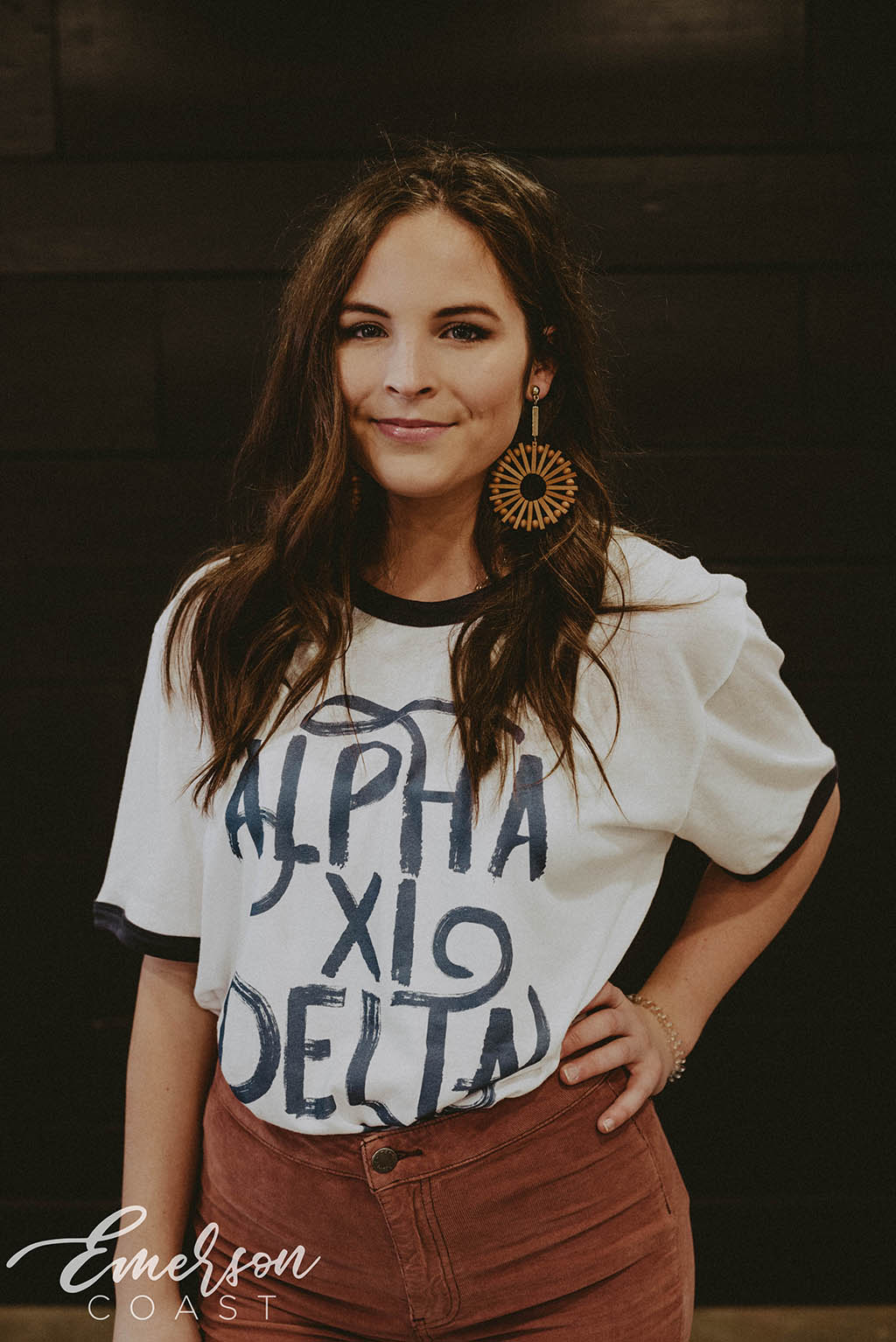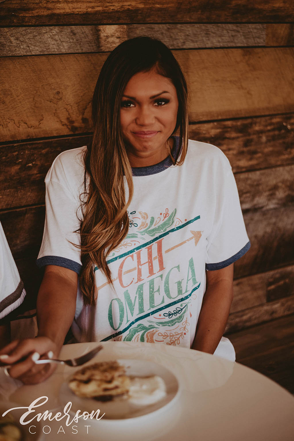 KKG at Florida State kept it effortlessly cool for Open Round with white slouchy tees styled with classic denim. Simple, chic, and easy to accessorize — the perfect uniform for making first impressions and showing off their signature style.