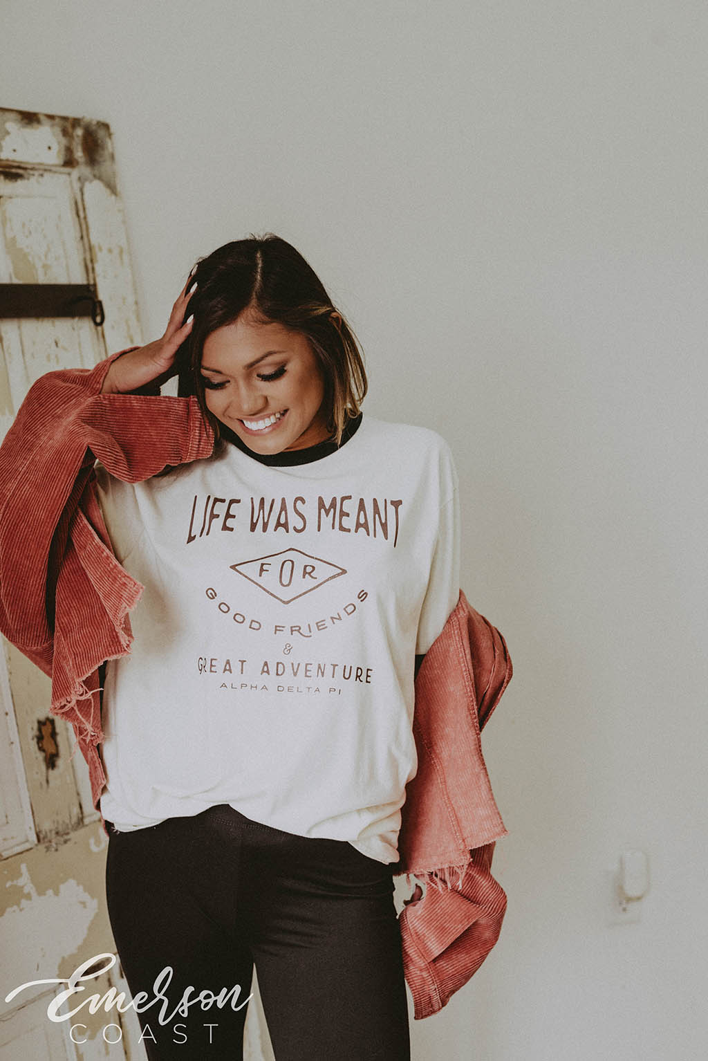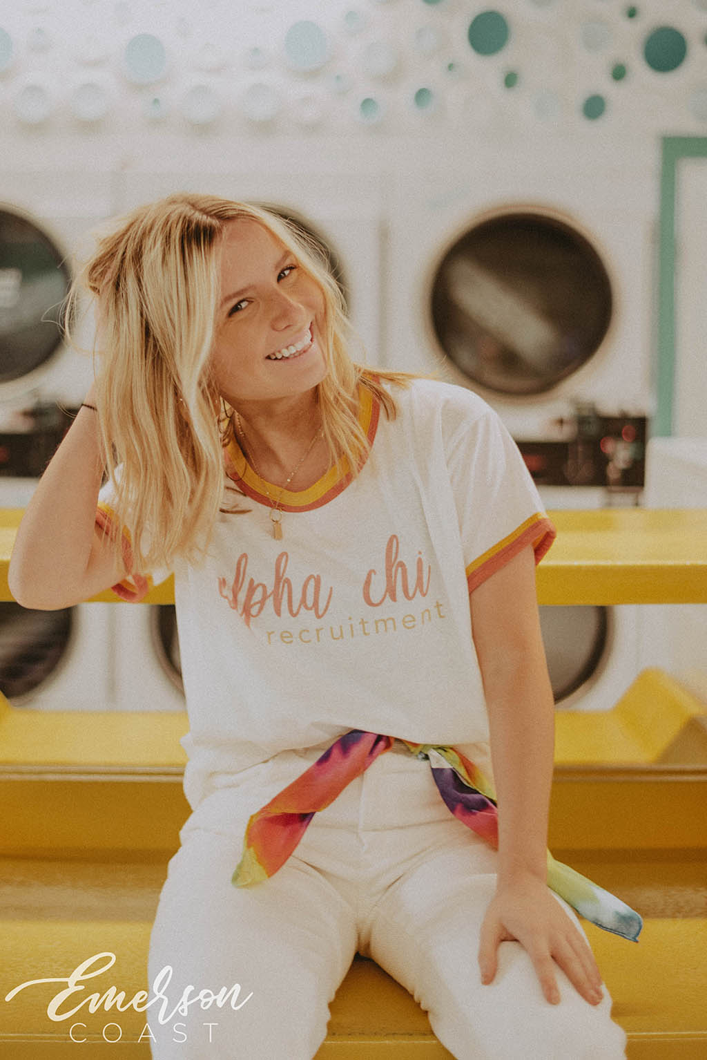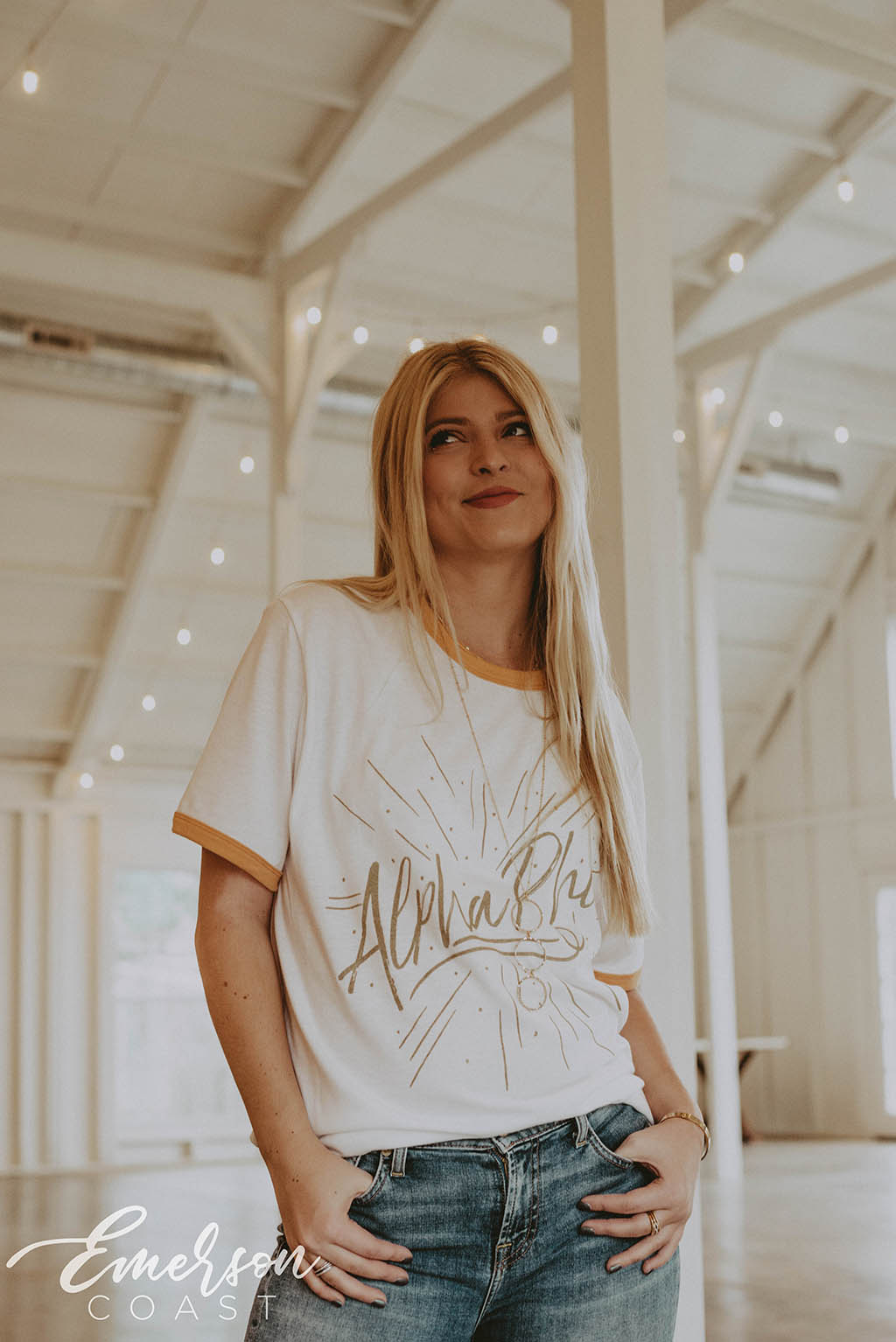 KKG at Florida State kept it effortlessly cool for Open Round with white slouchy tees styled with classic denim. Simple, chic, and easy to accessorize — the perfect uniform for making first impressions and showing off their signature style.