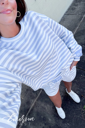 Model is 5'5" wearing a size M crewneck and size M shorts