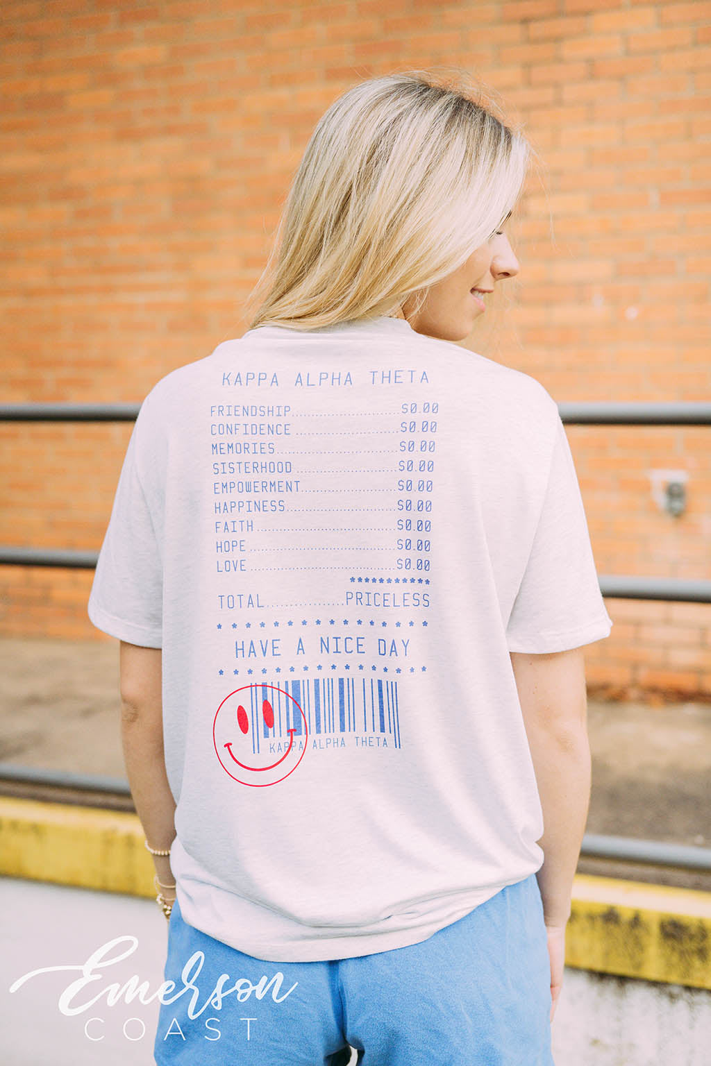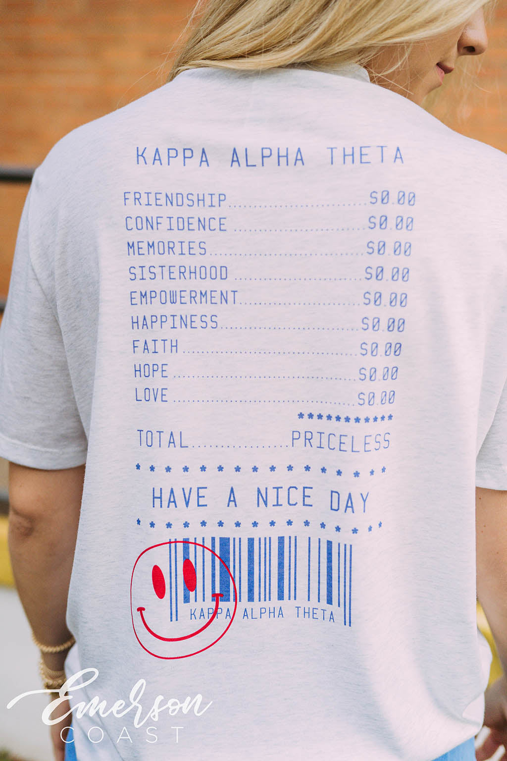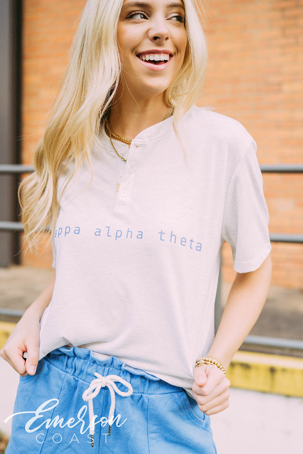 Stay trendy with the Kappa Alpha Theta PR Receipt Henley Tee!