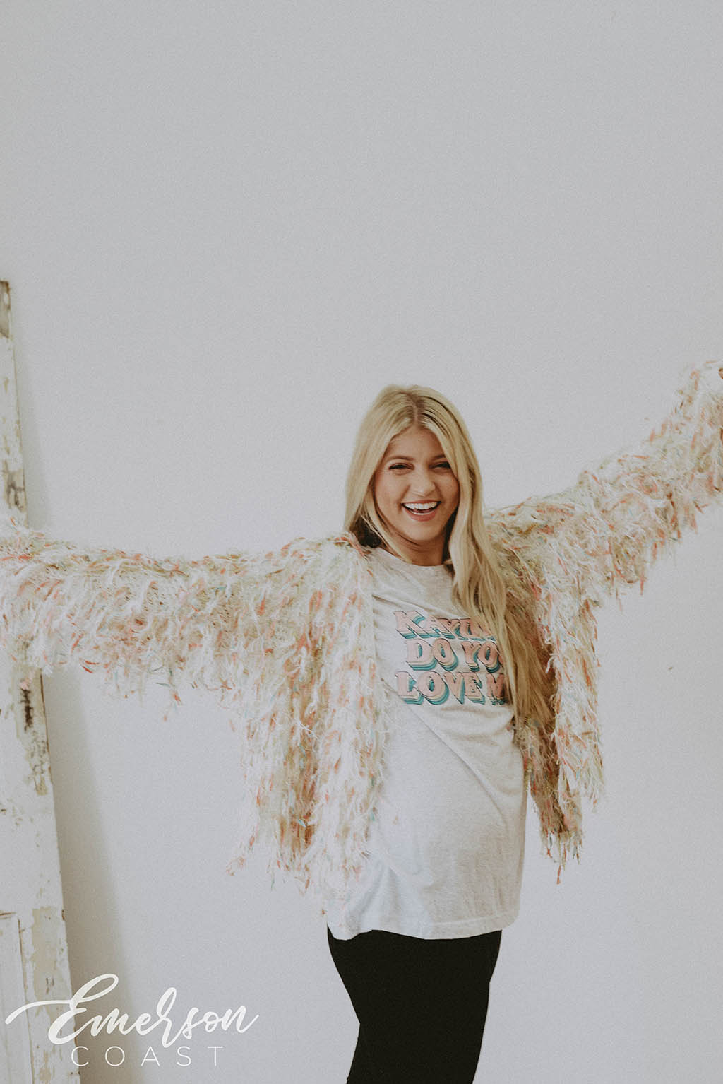 This white rocker tee pairs well with any design -- add a fun font and color to make this shirt stand out! The retro rainbow design is always a chapter favorite.