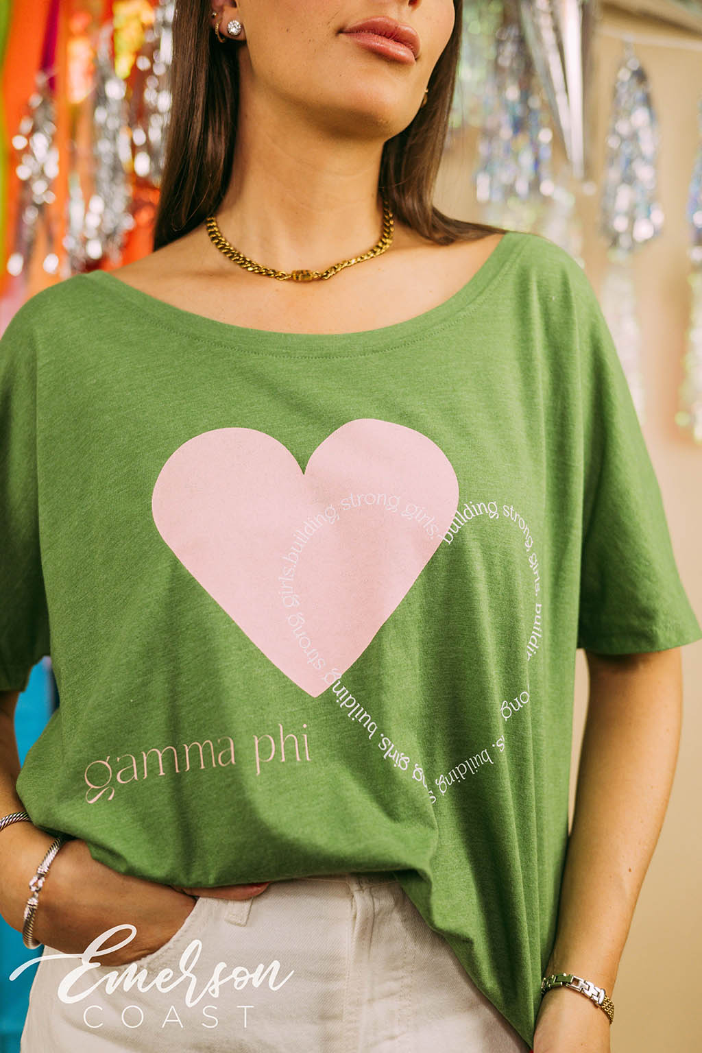 Pi Phi at Auburn made hearts melt with their white baby tees for Bid Day, featuring a sweet red heart and the phrase “I’m so happy we met.” A perfect, feel-good look to kick off sisterhood with major charm.