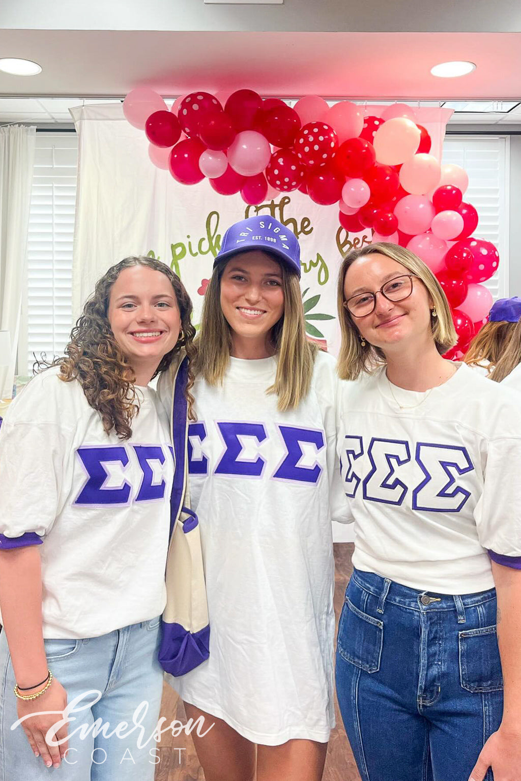 KKG at Florida State kept it effortlessly cool for Open Round with white slouchy tees styled with classic denim. Simple, chic, and easy to accessorize — the perfect uniform for making first impressions and showing off their signature style.