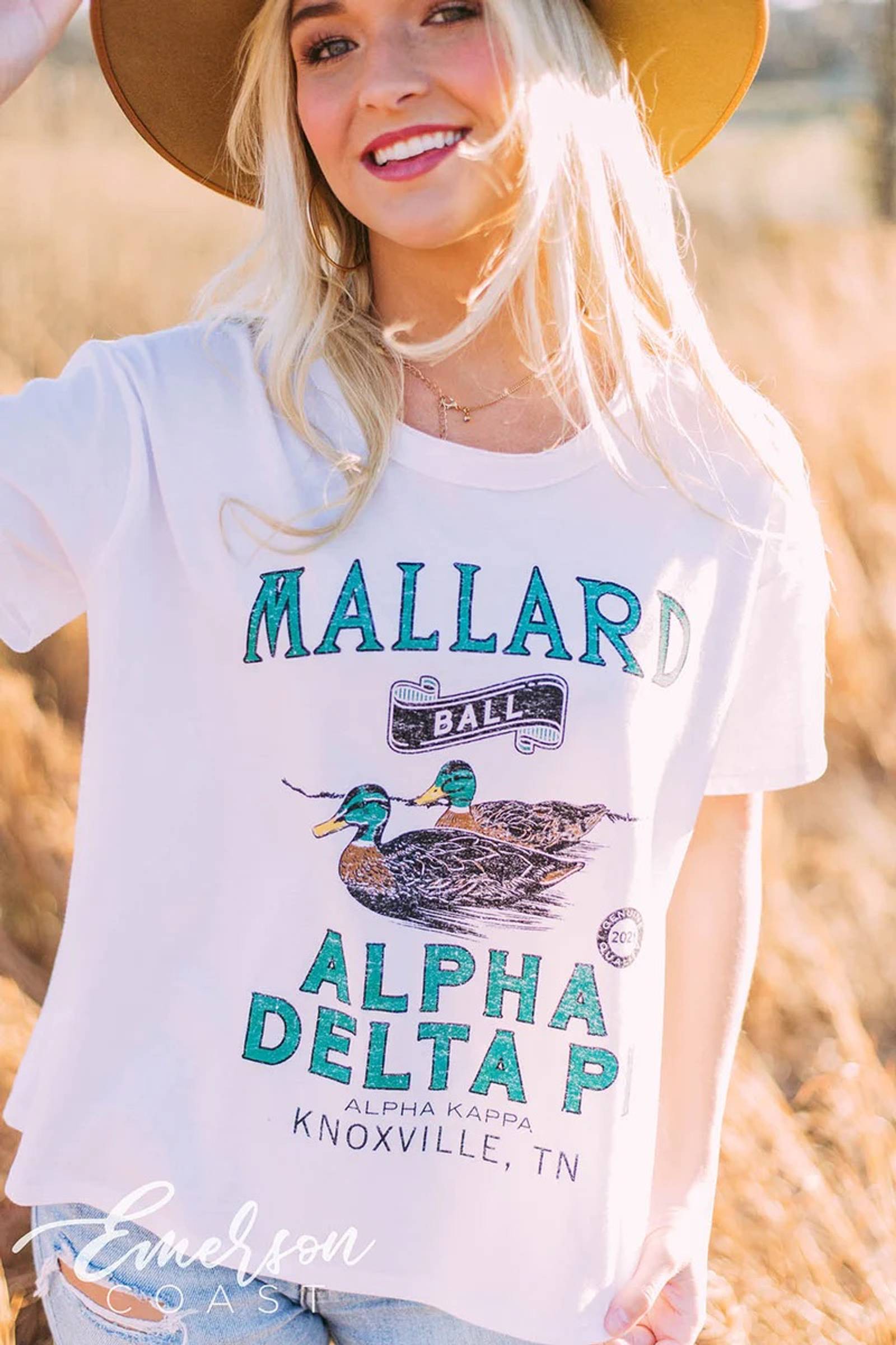 The neutral color scheme makes this bid day tee super easy to accessorize!