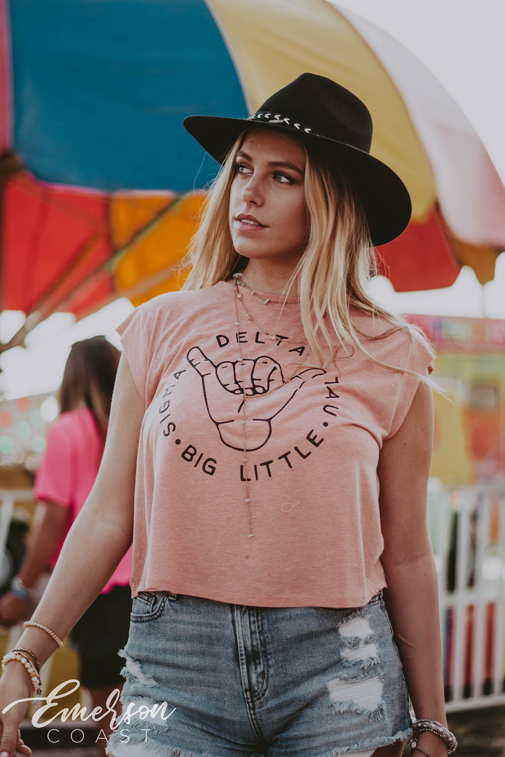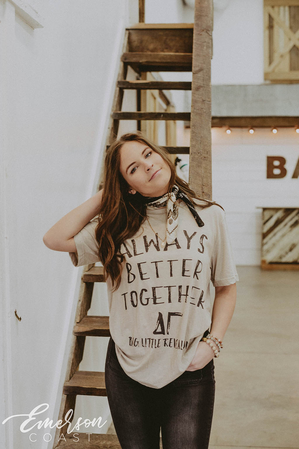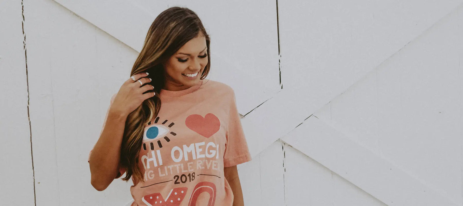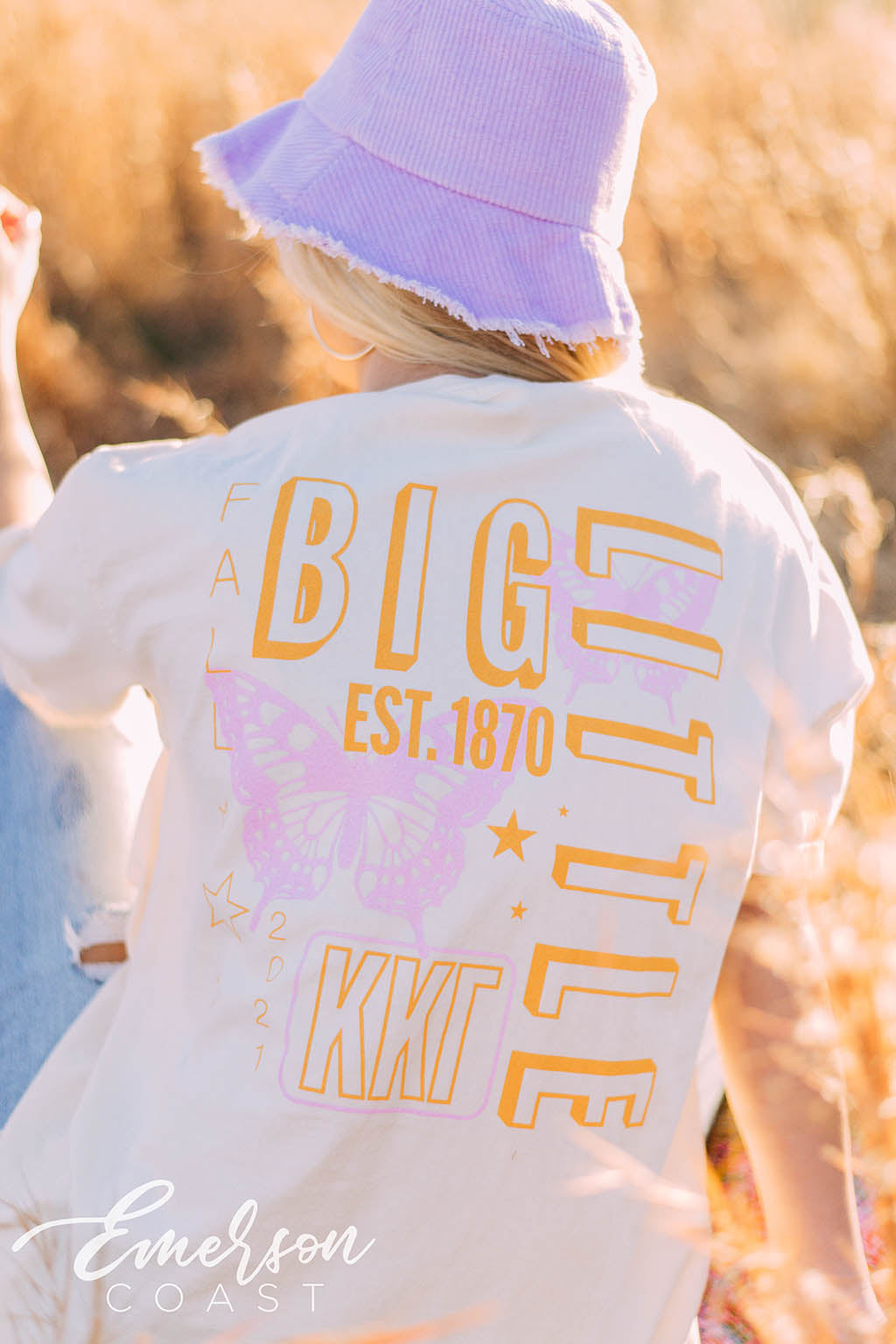 This special part of sorority sisterhood shapes your whole experience and gives you a bestie for life. As a Big, revealing yourself to your Little is a huge day for both of you. You want to make sure the day is unforgettable and that you exceed all expectations with how you do it. Though there are many parts to this process and lots of funny Big Little reveal ideas, one of the best ways to bond the two of you is through Big Little shirts. Having Big Little reveal shirts made is especially impactful and gives both of you a fun souvenir to remember the day. SHOW OFF YOUR BOND Emerson Coast has you covered for all your Big Little sorority shirts and Big Little reveal shirts. Nobody understands how unique a Big/Little bond is better than we do. We specialize in one-of-a-kind Big Little shirts for Greek life of all kinds, understanding that no two sorority experiences are the same. We especially understand this when it comes to Bigs and Littles. Both of you are unique, so your Big Little shirts have to reflect that special bond. We have shirts to reflect this individuality, with designs ranging from artistic to sporty, throwback to bohemian. Display your common interests and your extraordinary bond with funny Big Little reveal shirts that showcase your relationship and what makes it special. When it comes to Big Little reveal ideas, there are many avenues to take. You can be silly or serious, obvious or mysterious, DIY, or store-bought. No matter what kind of reveal you plan, it’s bound to be a big day for both you and your Little. Even though there are dozens of ways to reveal yourself and get started on your way to being best friends, funny Big Little reveal shirts are generally expected. Even though you’ll accumulate plenty of Big Little sorority shirts over your three years together at school, the reveal day shirt will certainly be one of the most special. Our amazing designs will make that special sorority shirt one that you want to wear over and over. With the wide range of styles and colors, it’s easy to find a Big Little reveal shirt that you both will treasure and wear often. No matter what your Big Little reveal ideas and plans are, make sure you have the reveal shirt ready to go. No piece of Greek clothing will be more special to the two of you, so you want to make sure you do it right. We offer the widest range of trendy designs and options for your sorority. Nothing seems quite right? Design your own Big Little shirts to make them even more special and unique. From classy and subtle to wild inside jokes, we’ve seen it all and are ready to make your Big Little reveal ideas a reality.