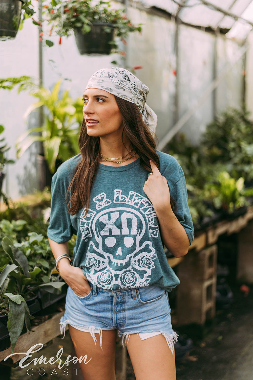 ZTA at Georgia Tech rocked custom teal slouchy tees for Recruitment, pairing them with white denim for a clean, polished look. The bold color choice made a statement while keeping things fun, fresh, and totally on brand.