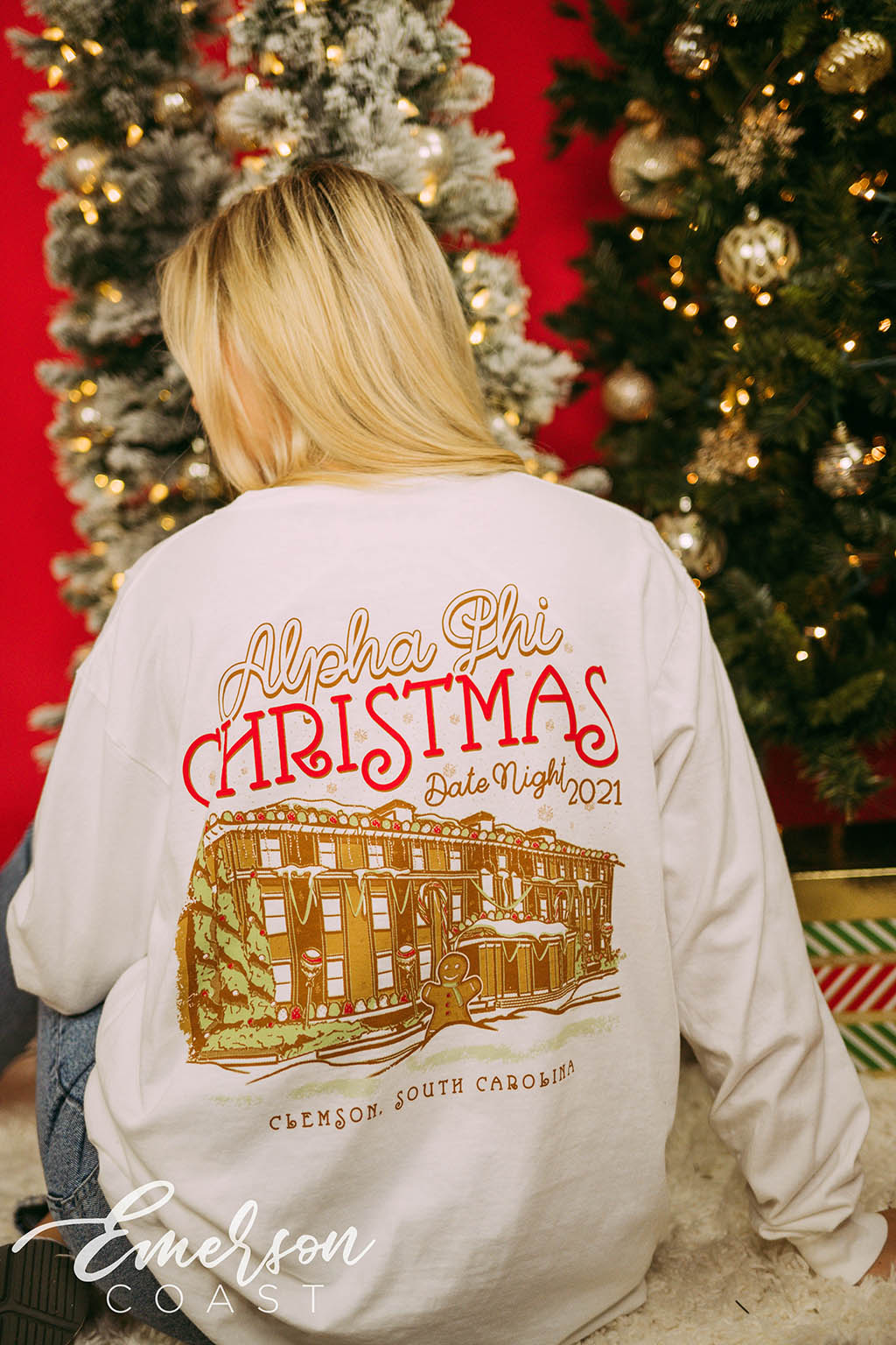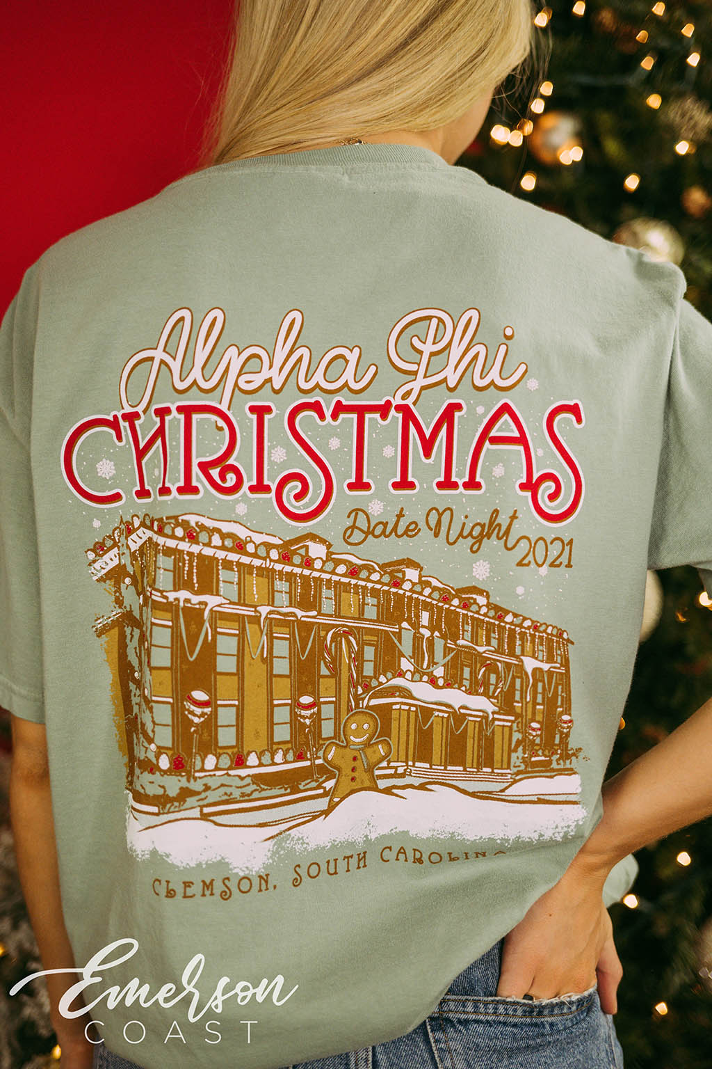 Alpha Phi Christmas Date Night Tee and Crewneck