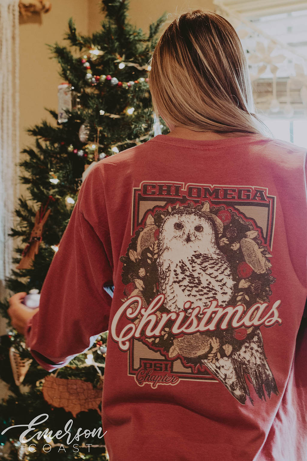 Fly away with the Chi O Owl Christmas Long Sleeve Tee!