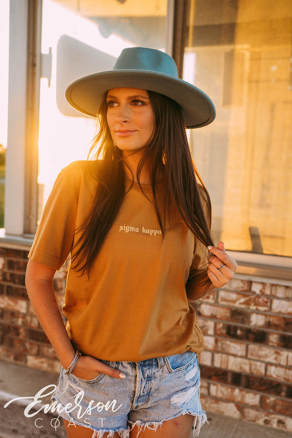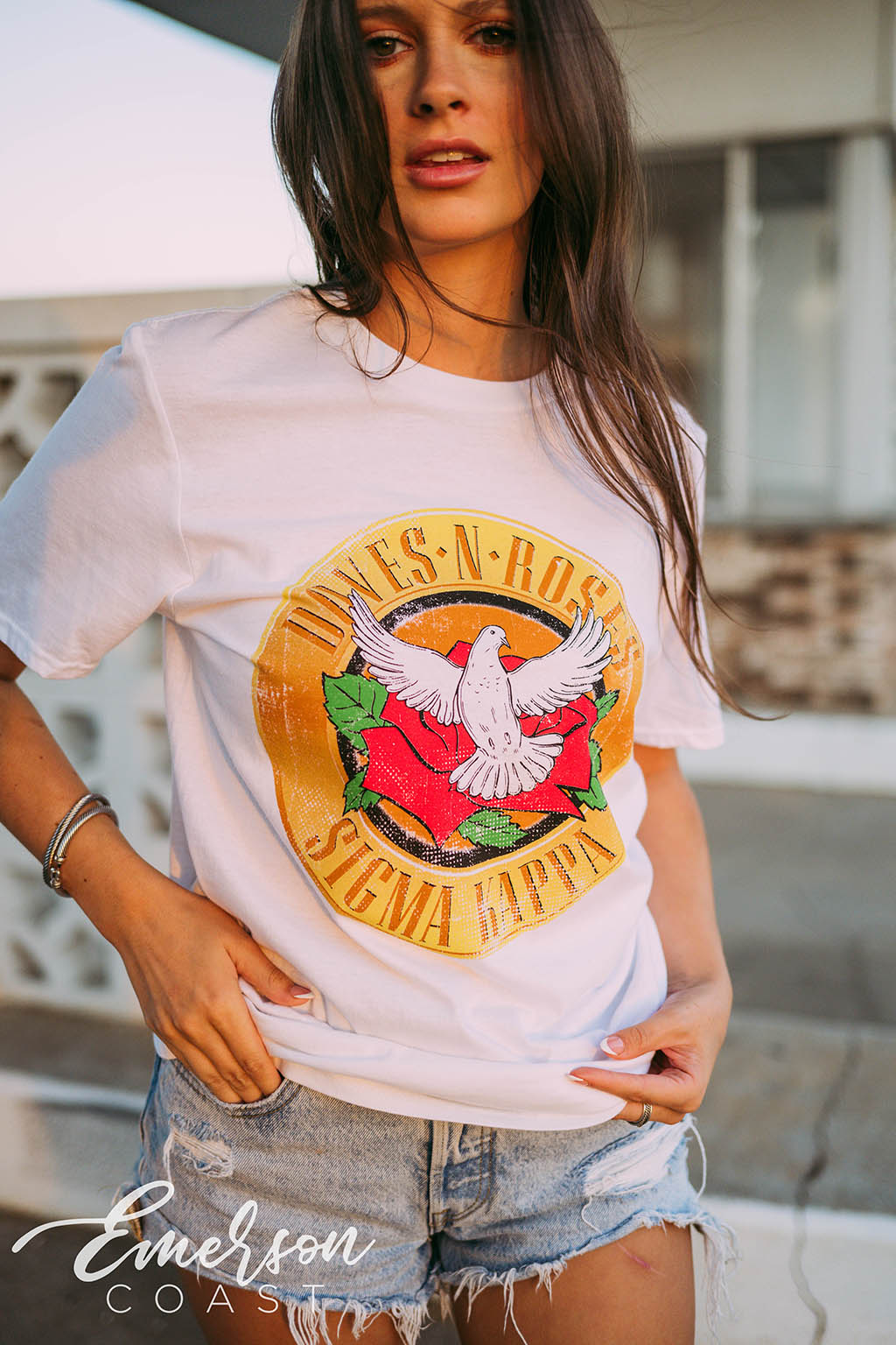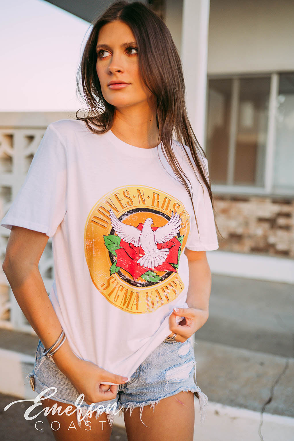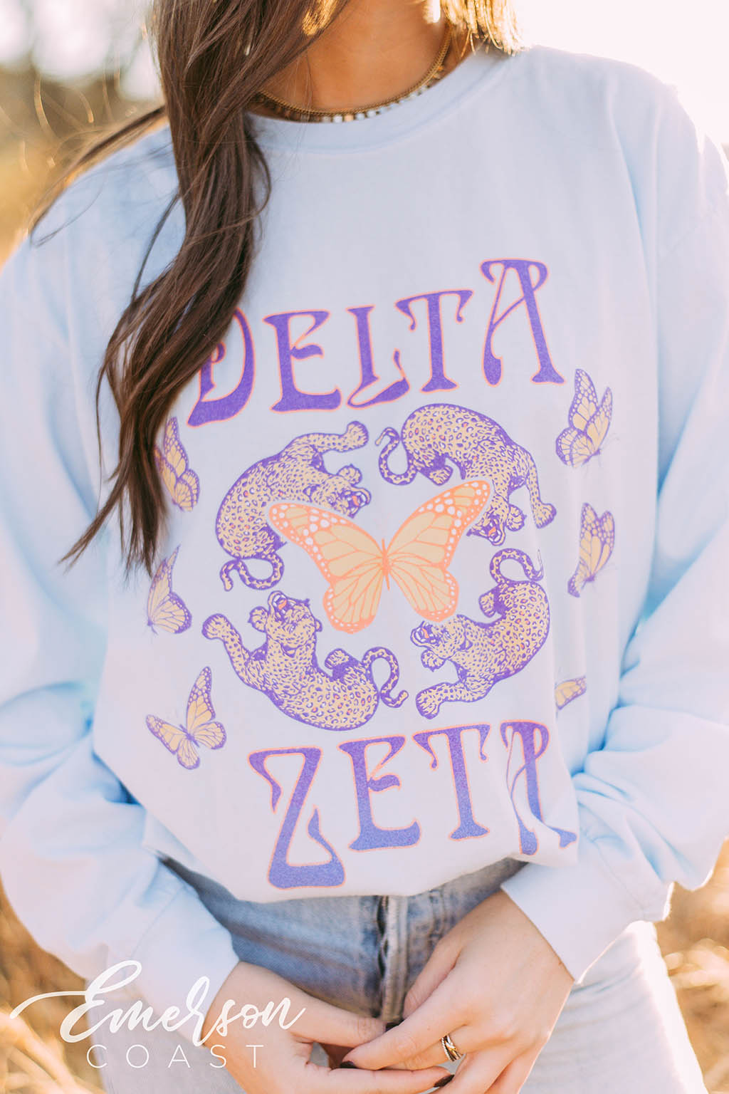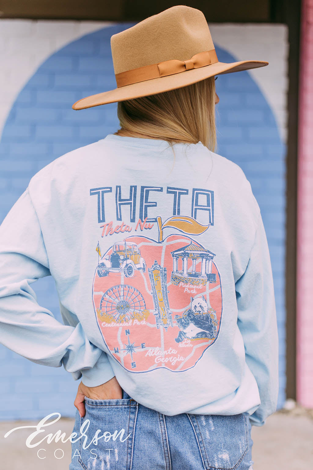 Tri Delta at Arkansas captured the magic of the Amalfi Coast for Bid Day with custom slouchy tees — white for members, cloud blue for new girls. Styled with flowy skirts and neck scarves, the whole vibe was straight out of a summer postcard.