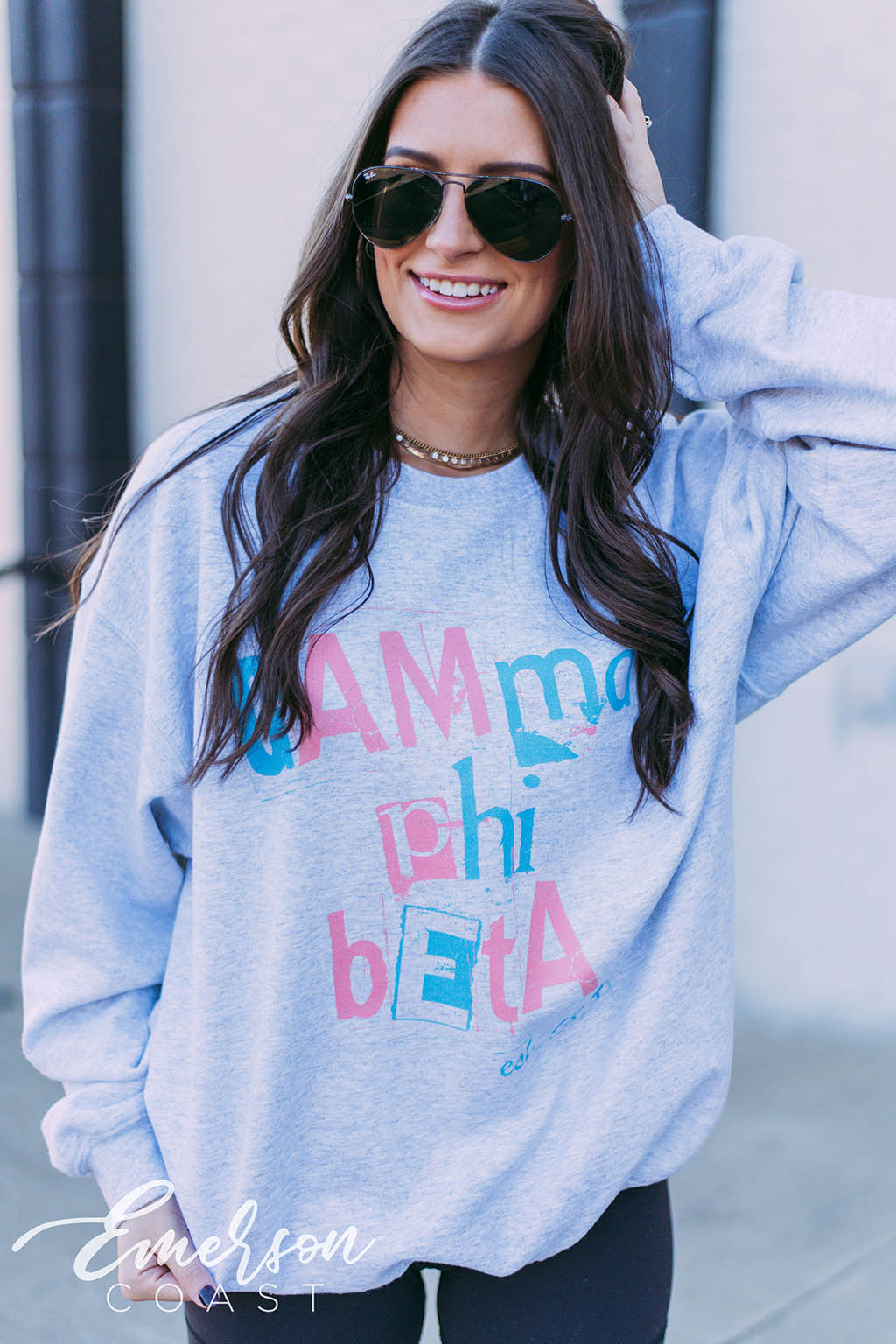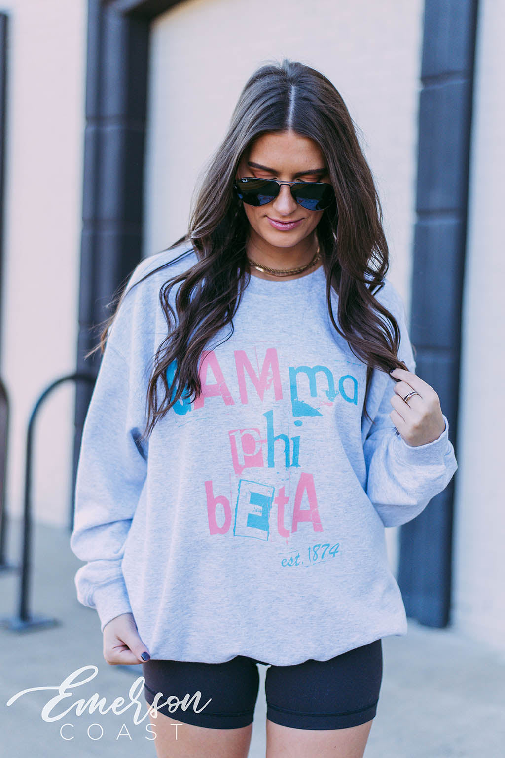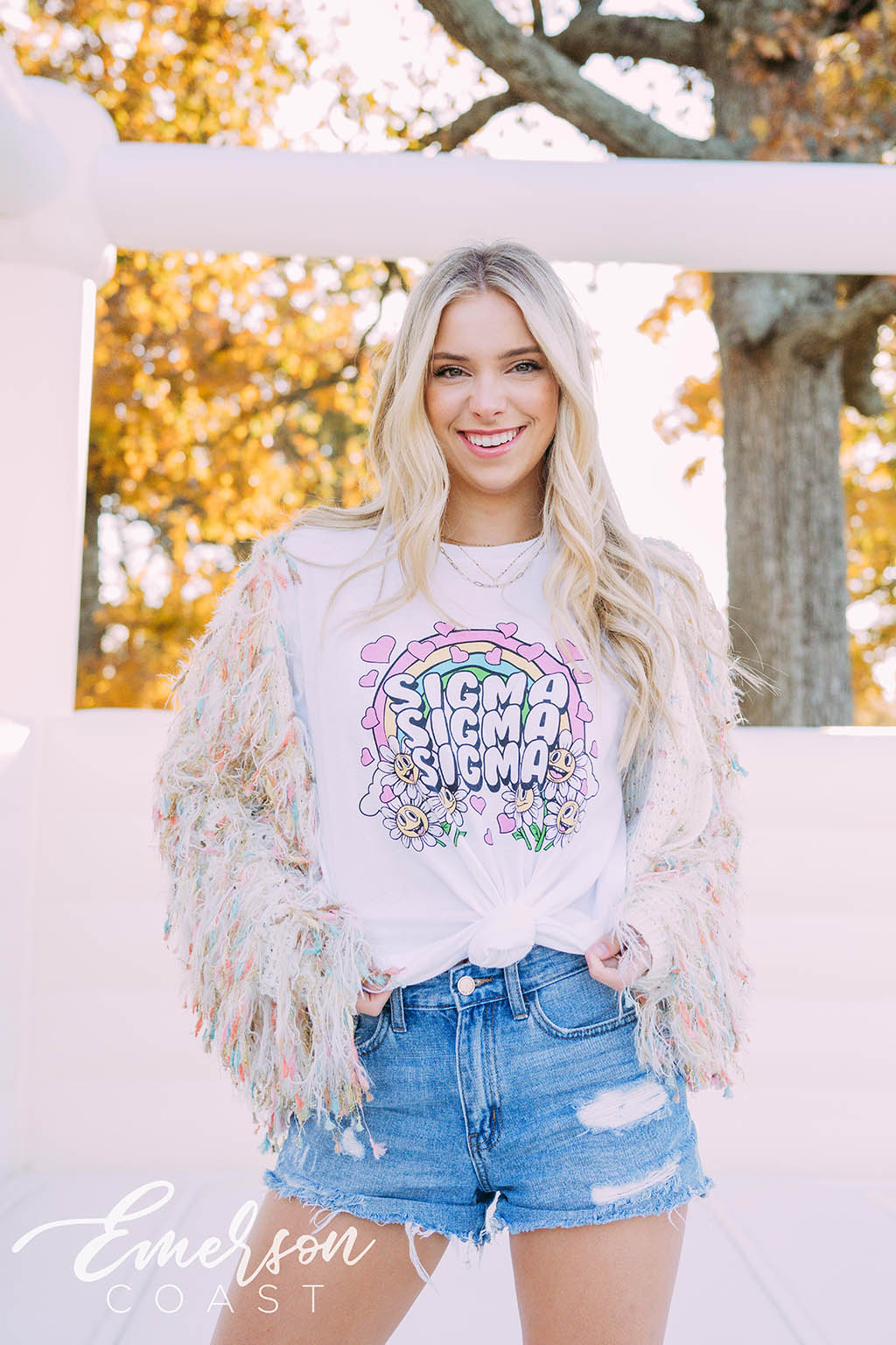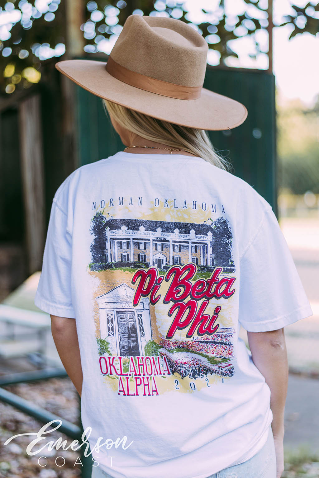 Gamma Phi at Oklahoma State floated into Bid Day with the dreamiest hot air balloon theme and the cutest pink colorblock ringer tees! Featuring soft pastel Greek letters, these tops added a fun pop of retro charm to an already magical day.