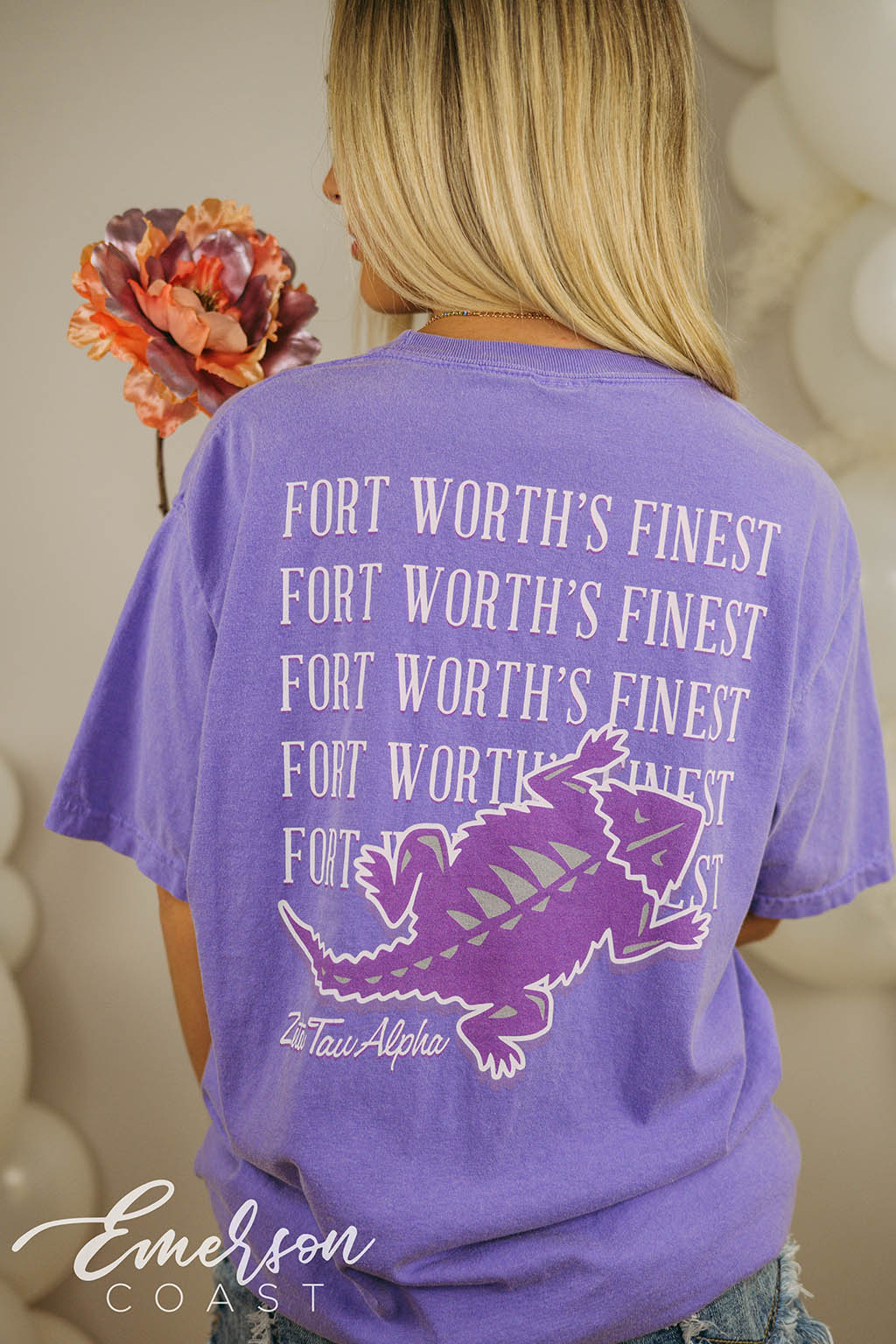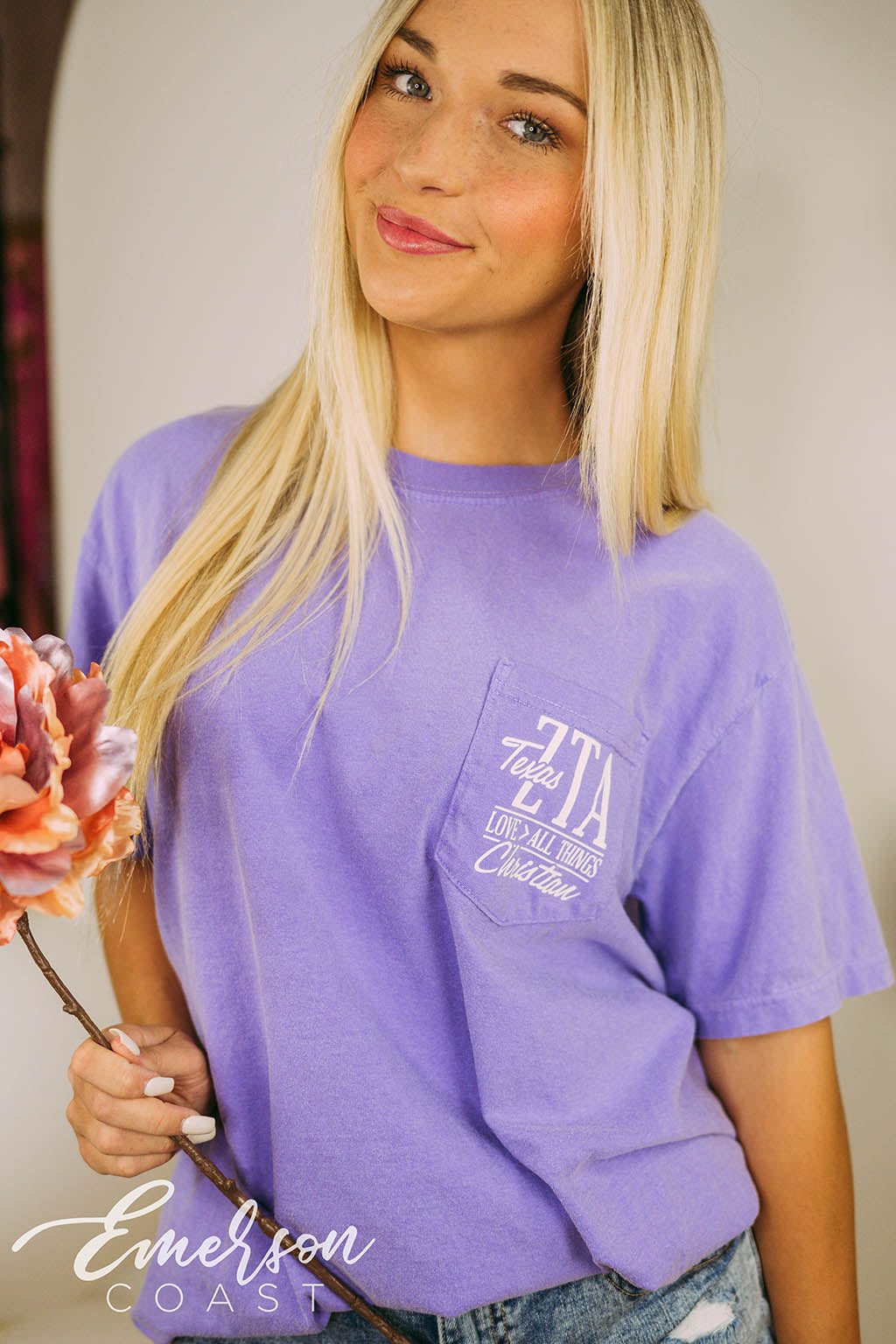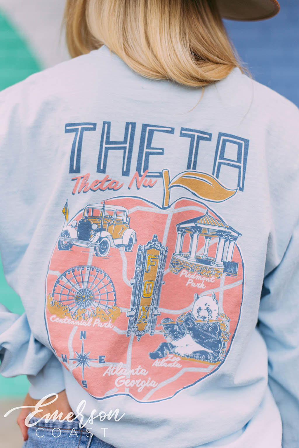 ZTA at Georgia Tech rocked custom teal slouchy tees for Recruitment, pairing them with white denim for a clean, polished look. The bold color choice made a statement while keeping things fun, fresh, and totally on brand.